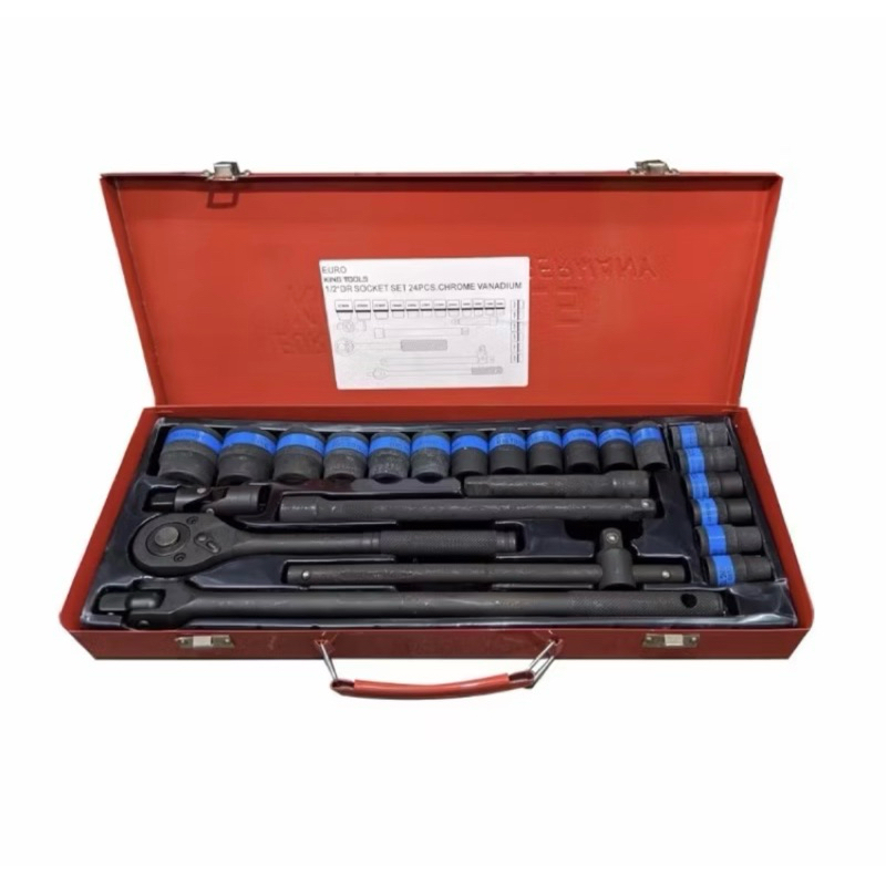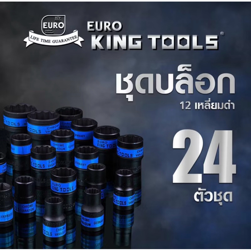 Euro ชุดบล็อกลมดำ ชุดบล็อก ดำ 24 ชิ้น แบบ 12 เหลี่ยม Euro King tool 4 หุน แท้100% (กล่องน้ำเงิน)