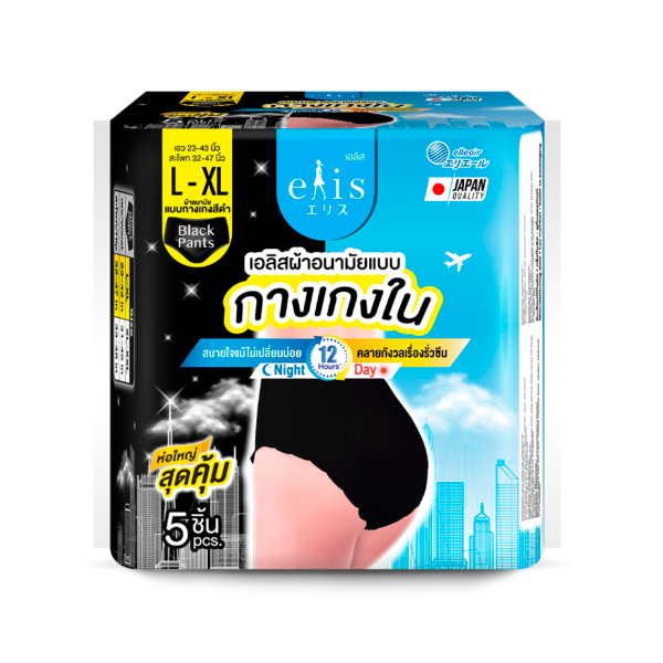 เอลิส ผ้าอนามัยแบบกางเกงสีดำ ไซส์แอล-เอ็กซ์แอล5ชิ้น / Elis Pants Black Series size L-XL 5P