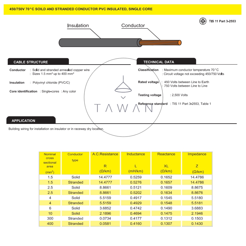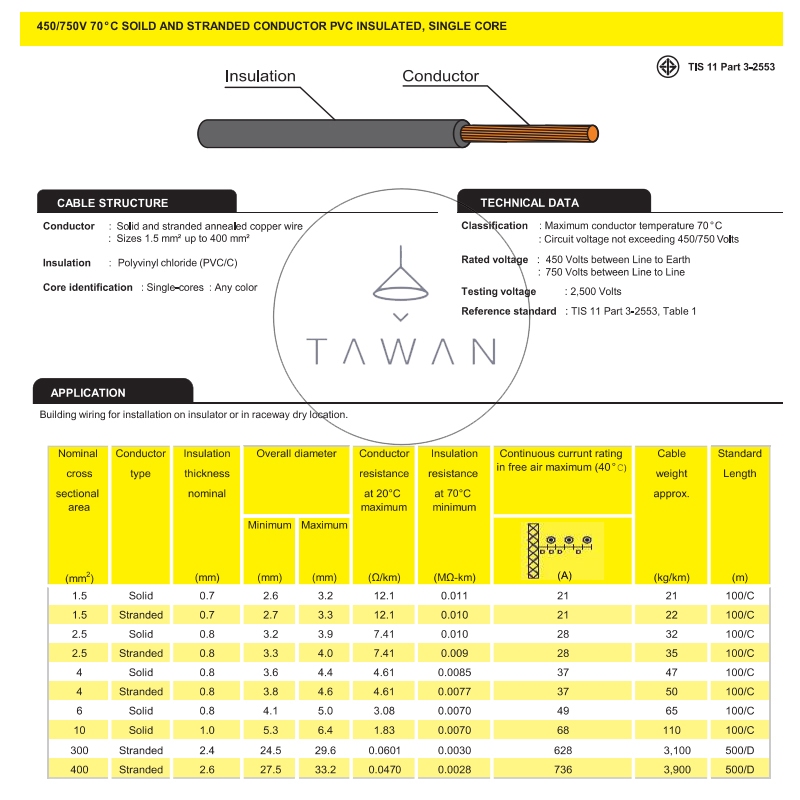 Thai Yazaki สายไฟ 60227 IEC01 THW ขนาด 1x16 เต็ม100เมตร สีดำ