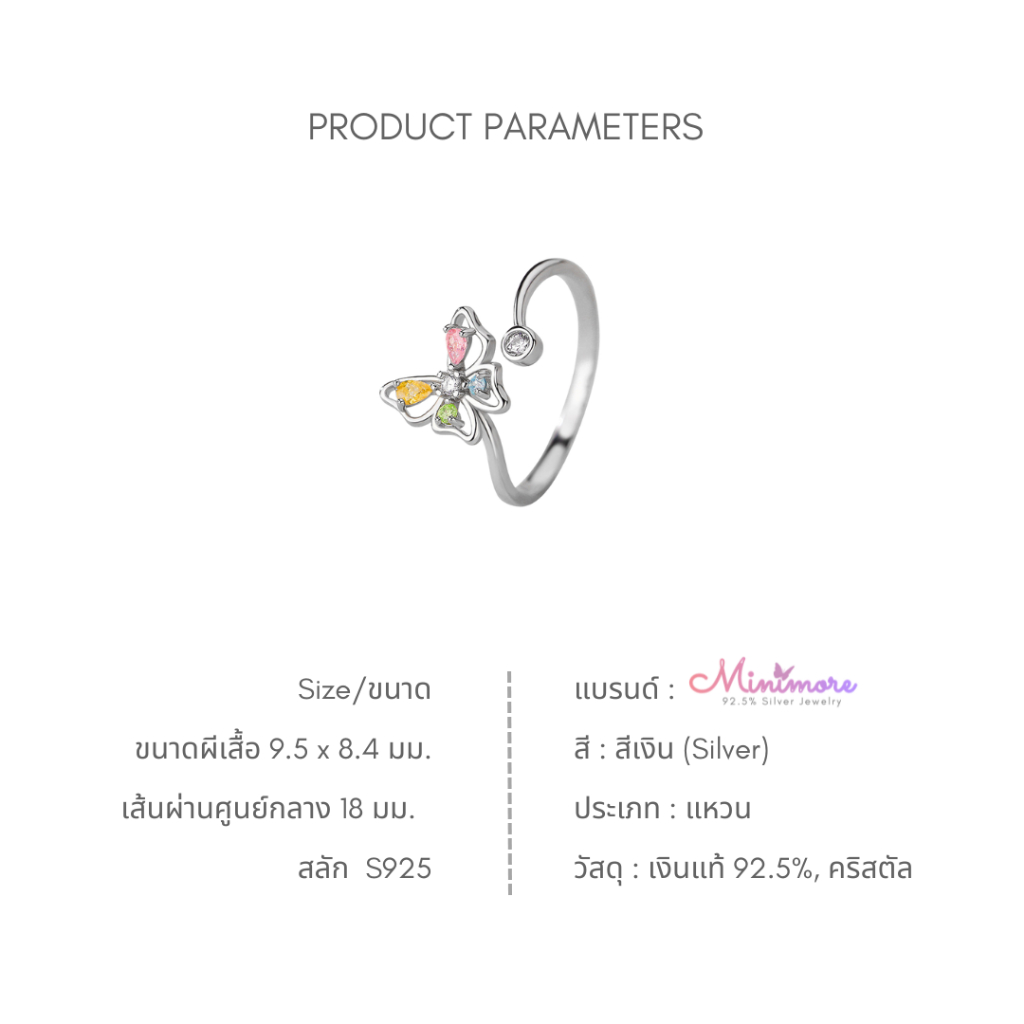 [R212]แหวนเงินแท้ 92.5% "Aurora Papillon Set" ดีไซน์ปีกผีเสื้อ เสริมโชค แถมกล่องจิวเวอรี่ ใบรับประกัน