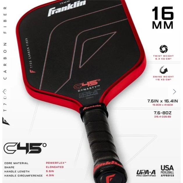 【Franklin】C45° Carbon Fiber Paddle Series ไม้พิคเคิลบอล Pickleball Paddle*ไม่มีซองไม้*