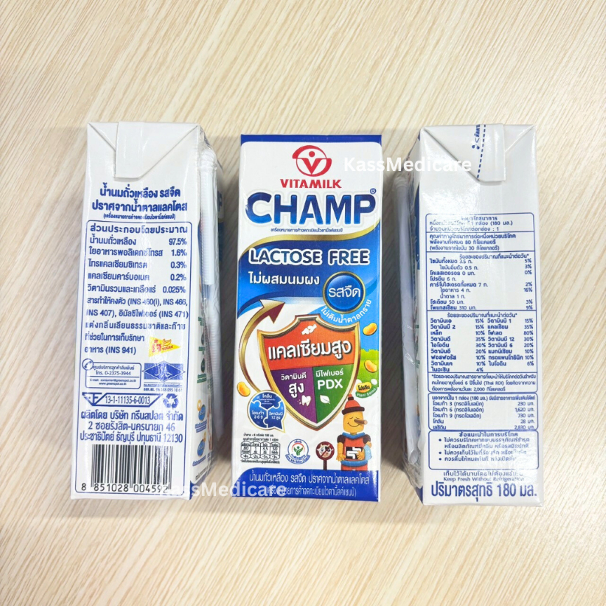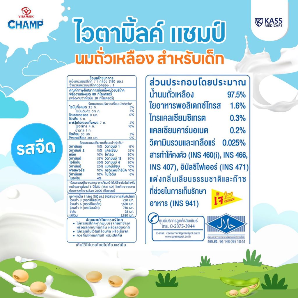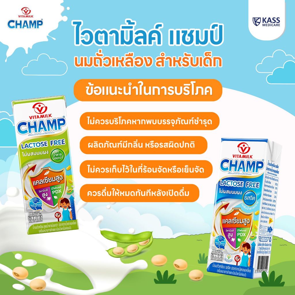 Vitamilk Champ ไวตามิ้ลค์ แชมป์ 180 มล. นมถั่วเหลือง แลคโตสฟรี ไม่ผสมนมผง (ยกลัง 48 กล่อง)