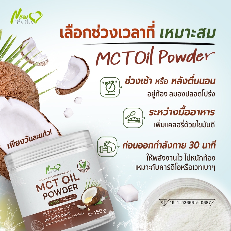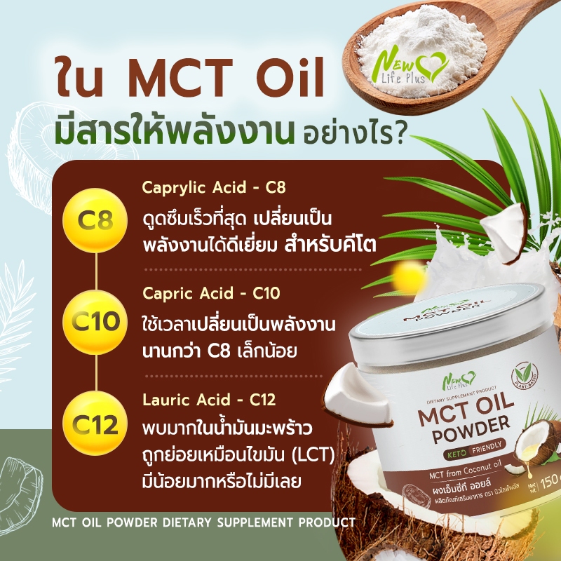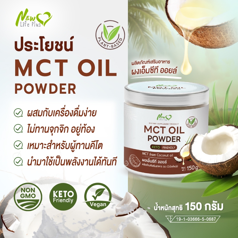 🚛ส่งฟรี(ซื้อคู่) New Life Plus MCT Oil Powder ผงมะพร้าวสกัดเย็น 100% ให้พลังงานสมอง ทานง่าย ไม่เลี่ยน ไม่มีน้ำตาล Keto