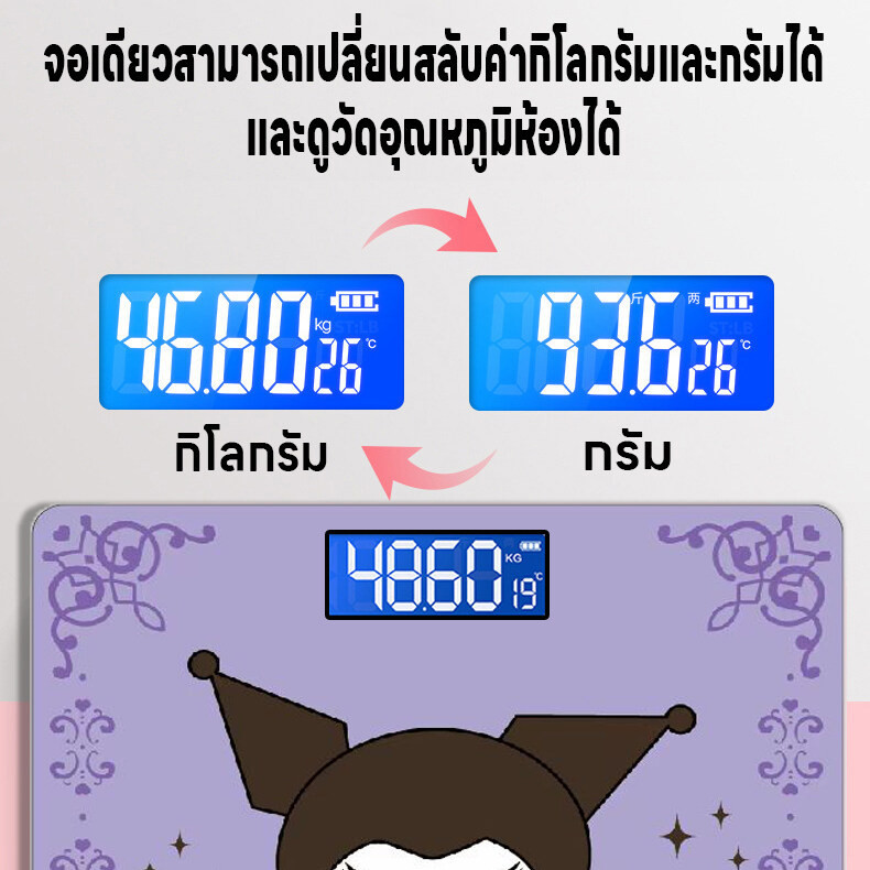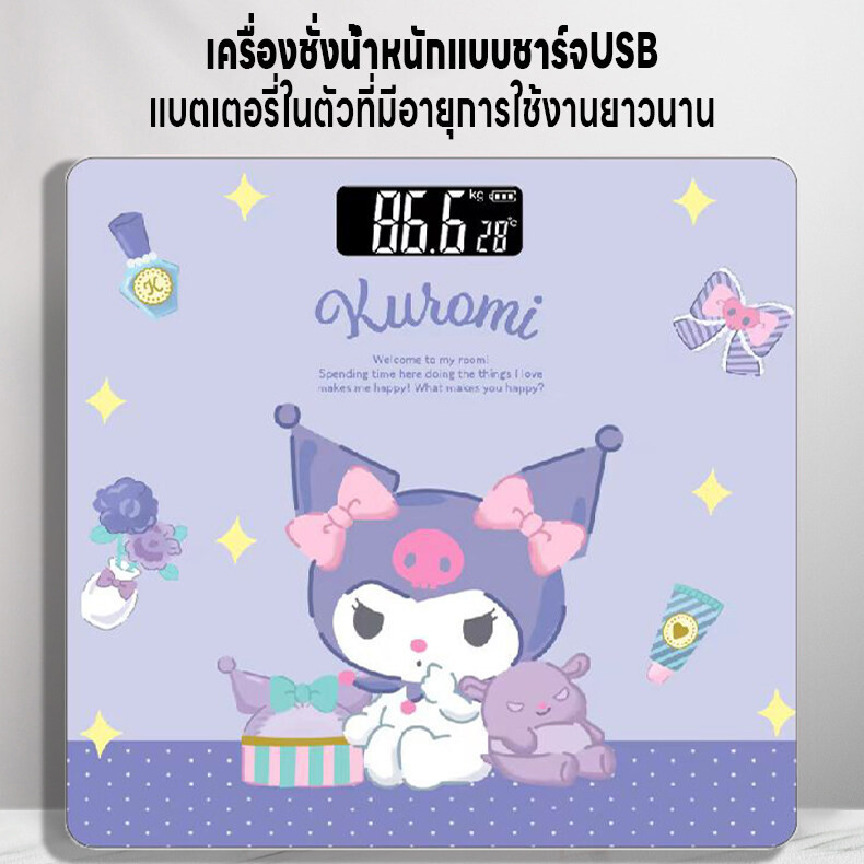 เครื่องชั่งน้ำหนักดิจิตอล เครื่องชั่งลายการ์ตูน แสดงค่าอุณหภูมิห้อง ชั่งได้0.01-180kg จอLED ความแม่นยำสูง แถมสายชาร์จUSB