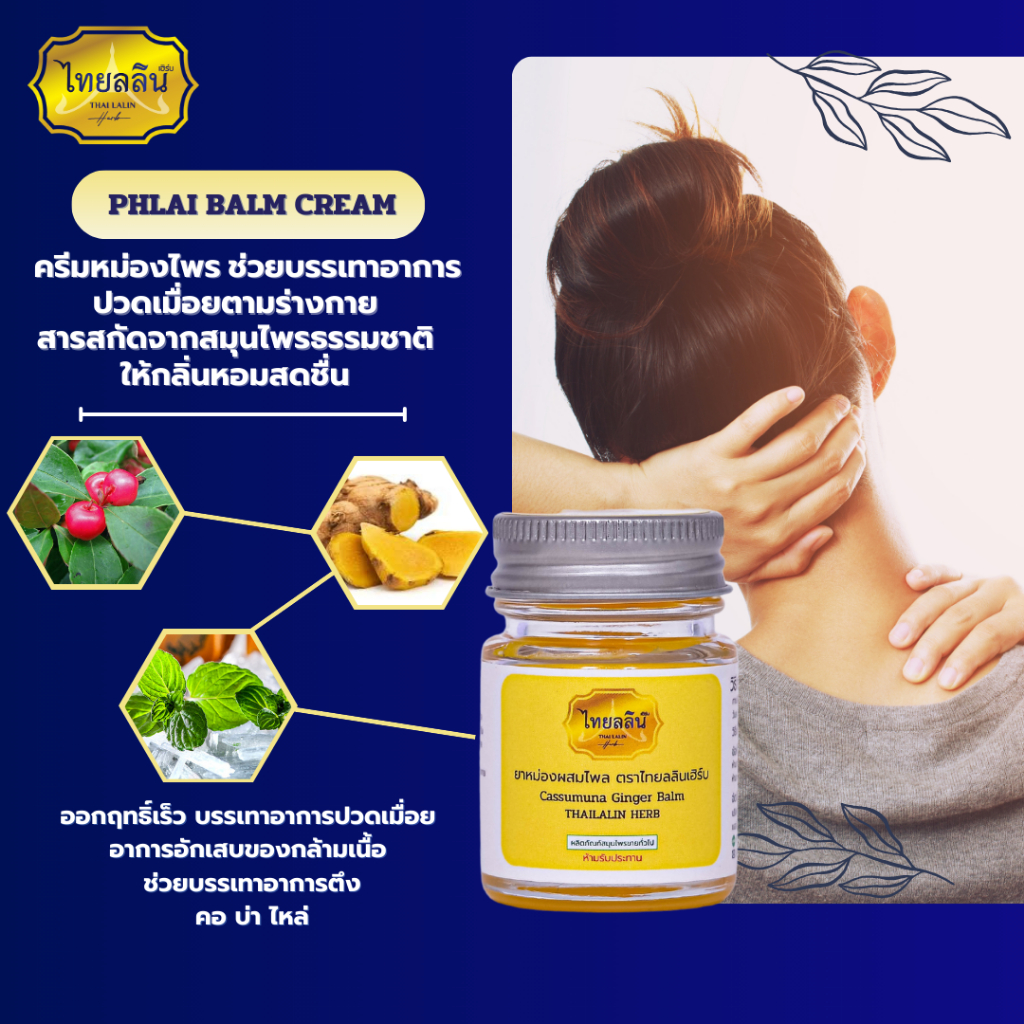 ยาหม่องผสมไพล - ไทยลลินเฮิร์บ THAILALIN สกัดจากน้ำมันไพลสด (20 G)