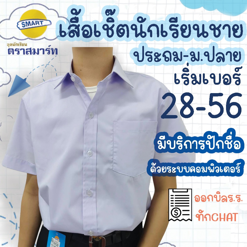 เสื้อเชิ้ตนักเรียนชาย เสื้อเชิ้ตชาย ตราสมาร์ท SMART มีบริการปักชื่อด้วยระบบคอมพิวเตอร์ เสื้อนักเรียนชาย ประถม มัธยม