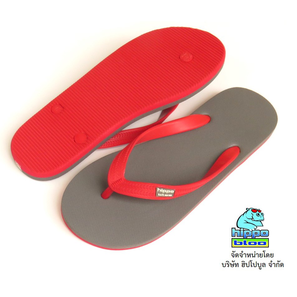 Hippo bloo รองเท้าแตะฮิปโปบูล รองเท้ายางพารา ชาย/หญิง RED CLOUD เทาเข้ม / แดง หูแดง เบอร์ 9-13 EU36-45