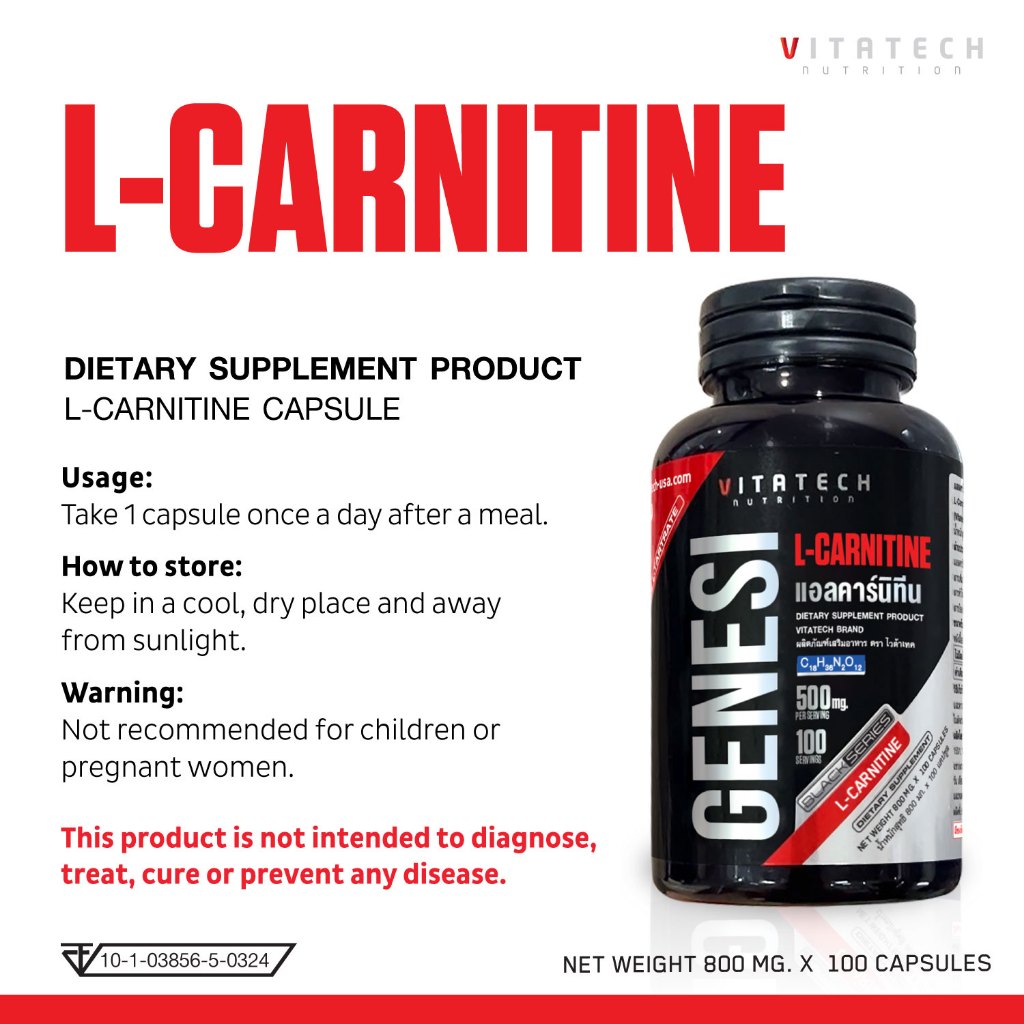 [แพ็ค 3 ขวด] L-Carnitine Vitatech แอลคาร์นิทีน ไวต้าเทค แอล-คาร์นิทีน LCarnitine L Carnitine 1 ขวด บรรจุ 60 แคปซูล
