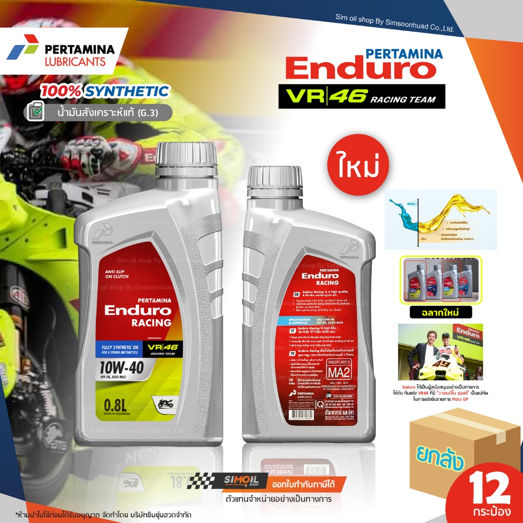 [สูตรใหม่ล่าสุด] **ยกลังx12** Enduro Racing SAE10W-40 ขนาด 0.8ลิตร/1 ลิตร น้ำมันเครื่องมอเตอร์ไซค์