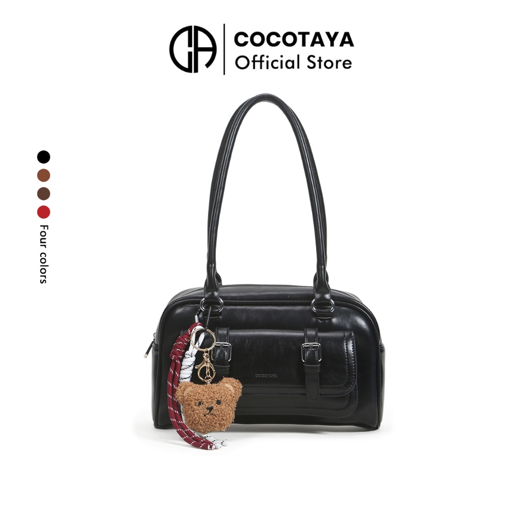 (COCOTAYA) Florra Bag กระเป๋าสะพายหนัง PU ย้อนยุค กระเป๋าใต้วงแขน แถมจี้ 1 ใบ