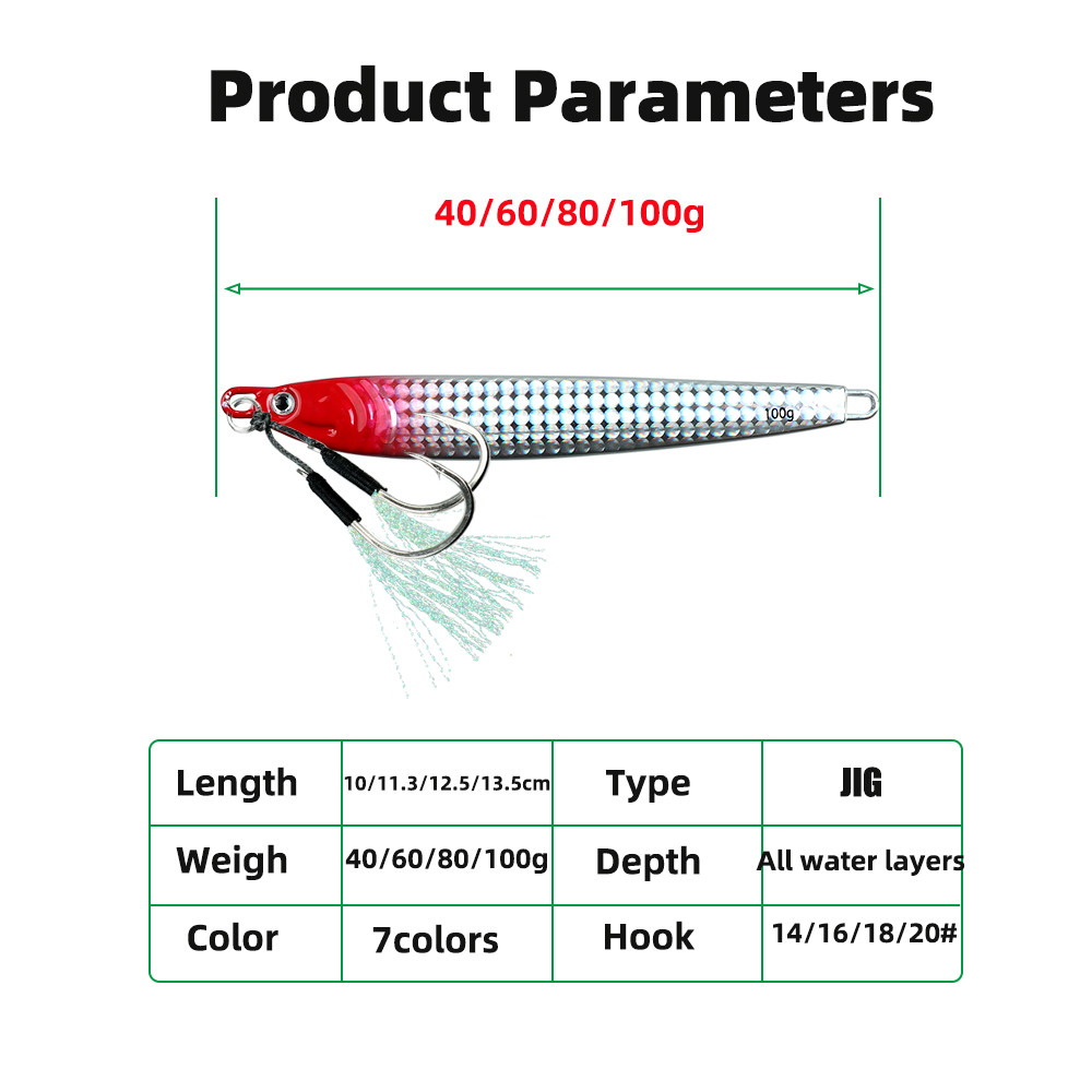 Fishing Jig Lure 40g/60g/80g/100g เหยื่อตกปลาทะเลลึก Slow Jigging เหยื่อปลอมพร้อมตะขอปลาคู่ช้า Clamp