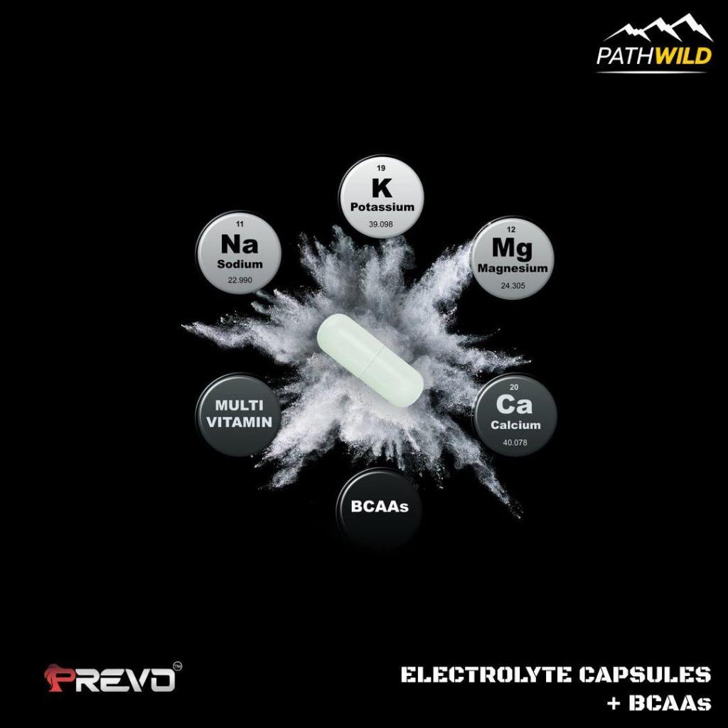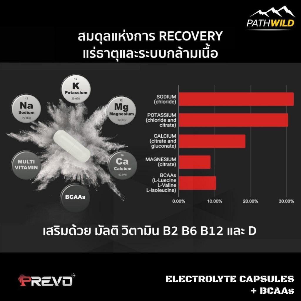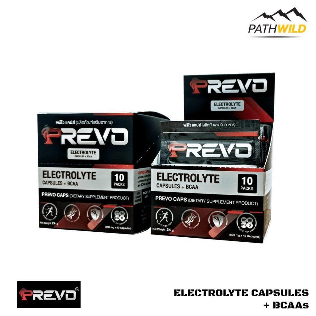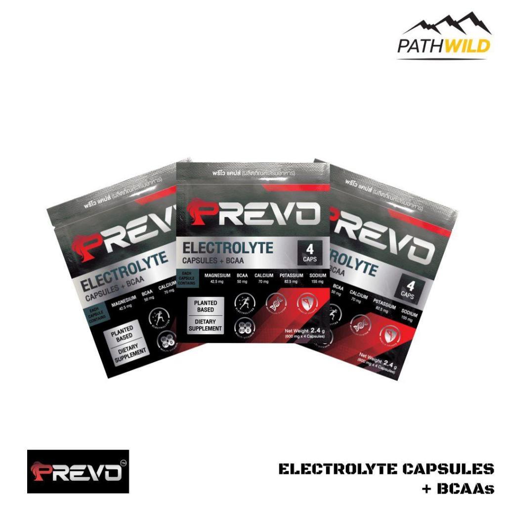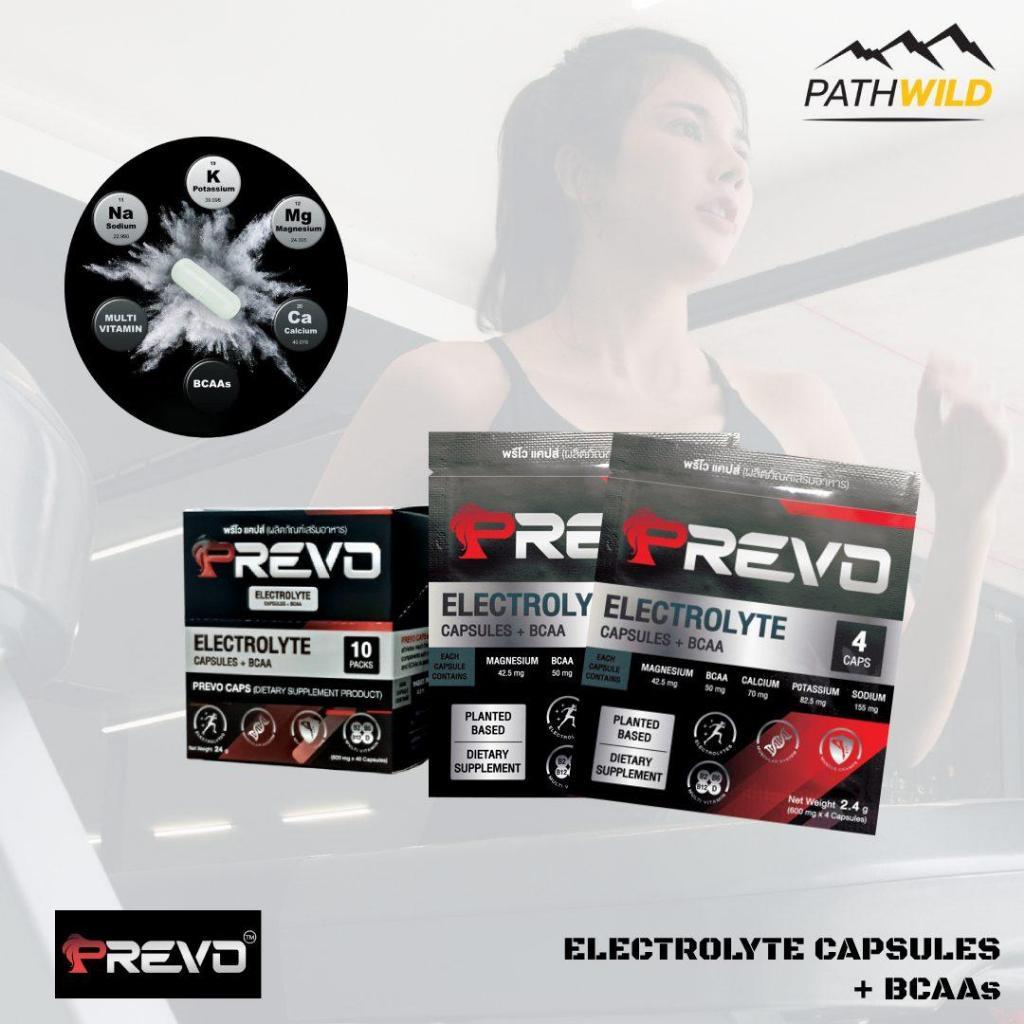 PREVO CAPS ELECTROLYTE CAPSULES + BCAA พรีโว แคปส์ เกลือแร่ อิเลคโทรไลต์ชนิดแคปซูล ช่วยป้องกันตะคริว รักษาสมดุลเกลือแร่
