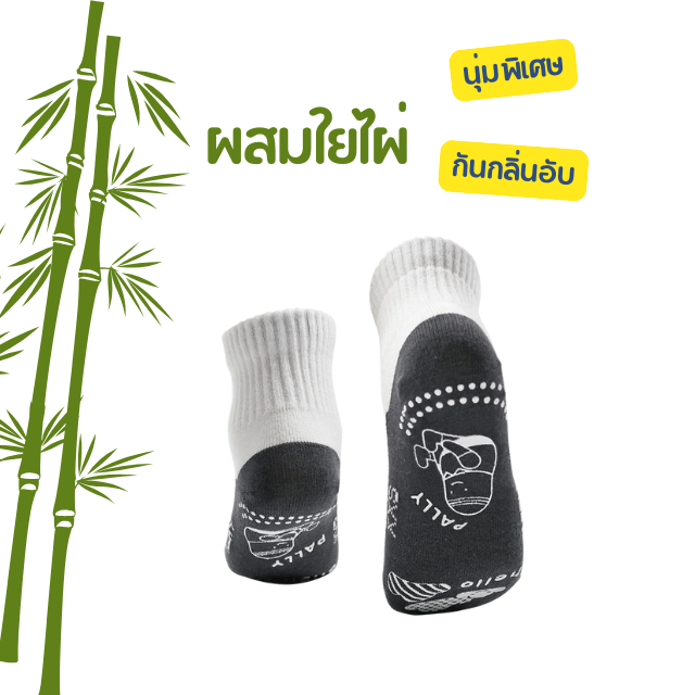 Pally ถุงเท้านักเรียนกันลื่น พื้นเทาผ้าผสมเยื่อไผ่ กันกลิ่นอับ ลายมังกรพาวลี่ และ ยูนิคอร์น