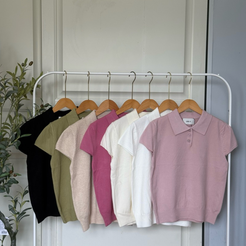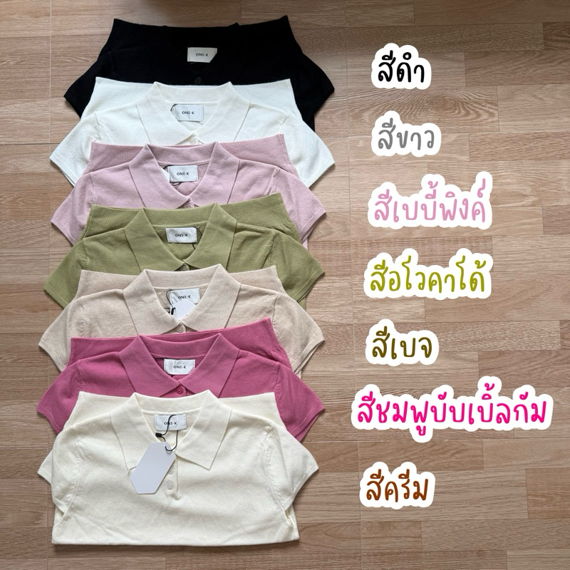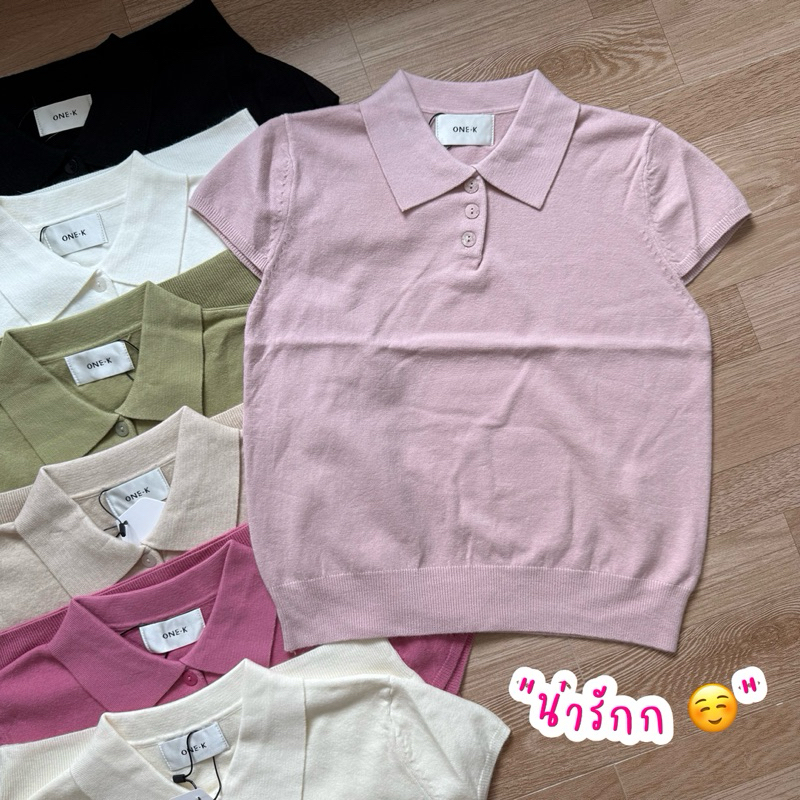 [ป้าย One K] เสื้อไหมพรมทรงโปโลแขนเต่อใส่แล้วทำให้ดูผอมมาพร้อมสีน่ารักน่ารักหลายสีเลยค่ะ