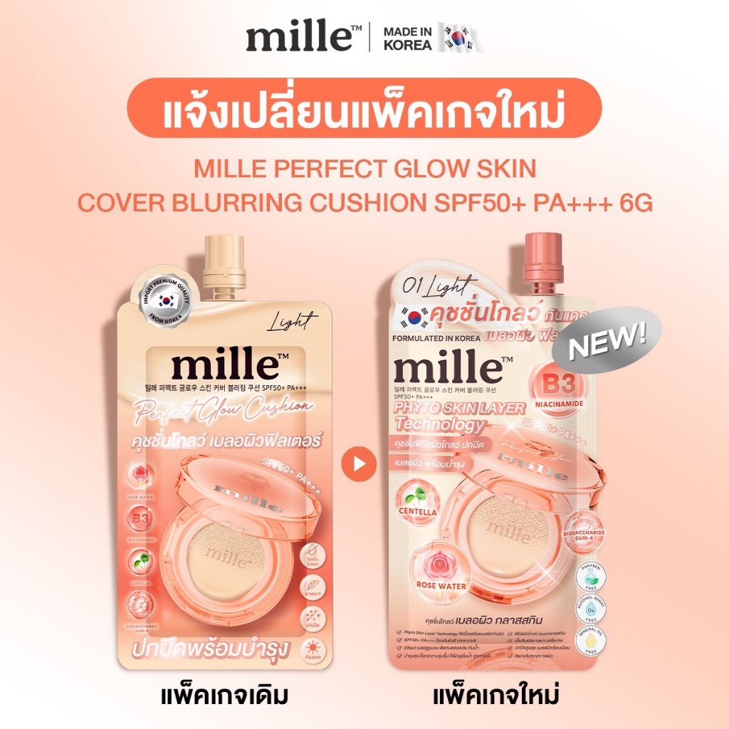 MILLE Perfect Glow Skin Cover Blurring Cushion SPF50 PA+++ 6g มิลเล่ เพอร์เฟ็กต์ โกลว์ สกิน คัฟเวอร์ เบลอริ่ง คุชชั่น