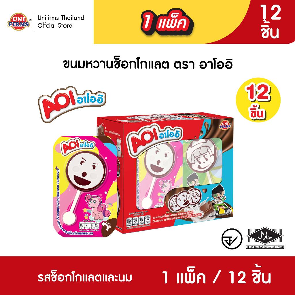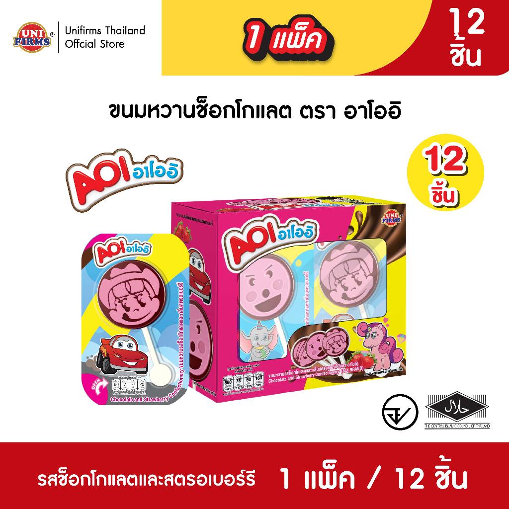 [1 แพ็ค 12 ชิ้น] Aoi อาโออิ ขนมหวานรสช็อกนมและขนมหวานรสช็อกโกแลตและกลิ่นสตรอเบอร์รี่ ขนาด 15 กรัม x 12 ชิ้น