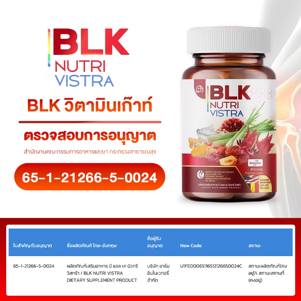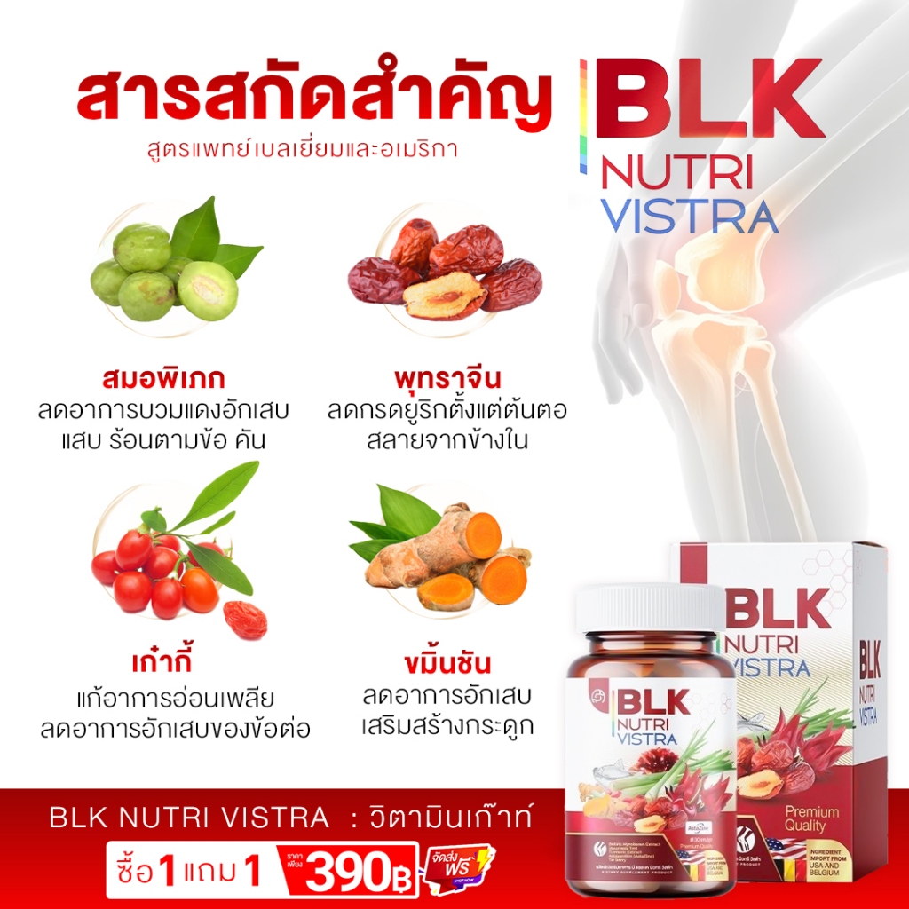 (ในไลฟ์มีส่วนลด) วิตามินเกาต์ BLK ผลิตภัณฑ์อาหารเสริม บีแอลเค นิวทรี วิสต้า สูตรกระดูก