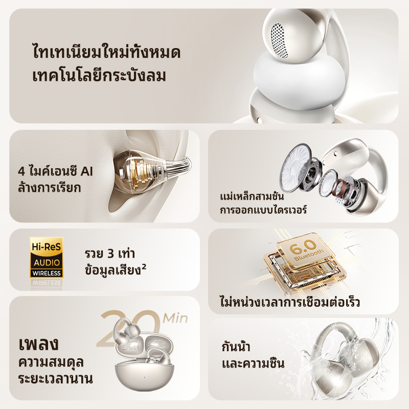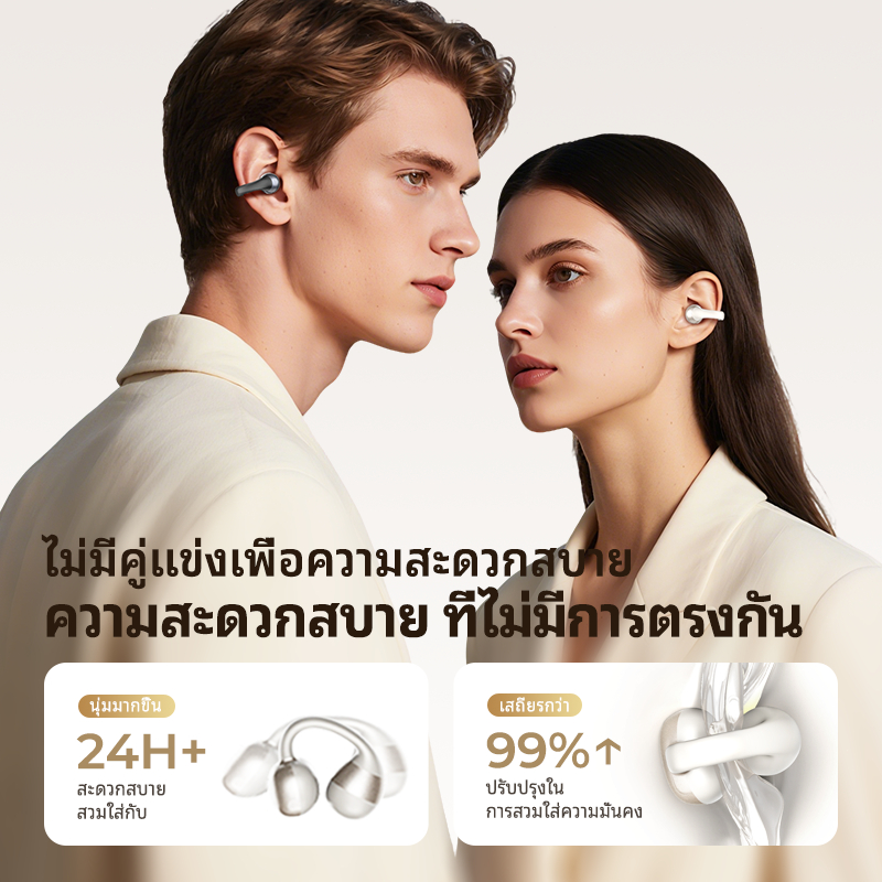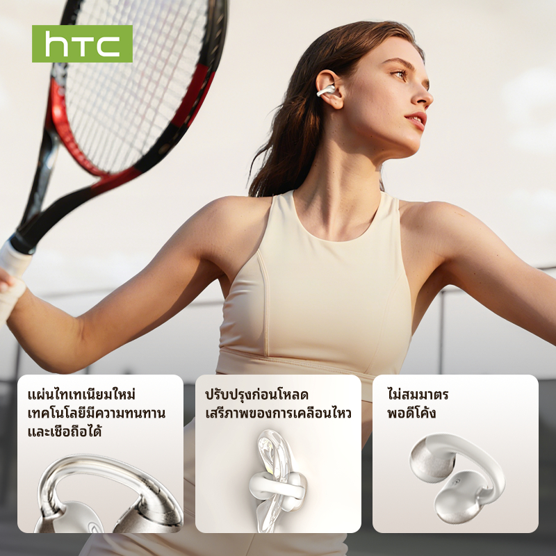 HTC NE56 Open-Ear หูฟังบลูทูธ Clip-On Fit Premium Dolby Audio กันน้ำ หูฟังบลูทูธไร้สาย with Microphone