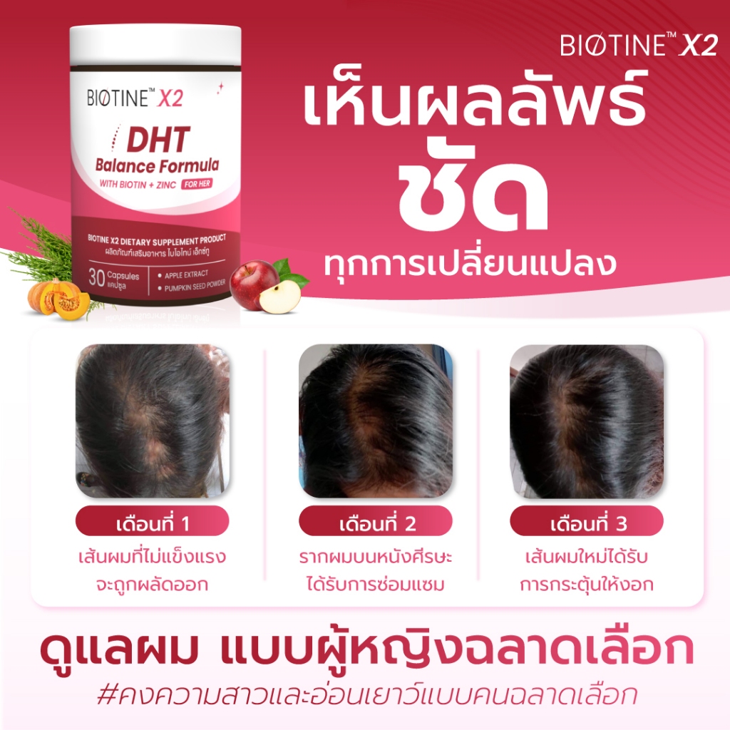 BIOTINE X2 (ไบโอไทน์ เอ็กทู) สำหรับผู้หญิง ซื้อ 6 รับเพิ่ม 2 กล่อง ปิดรอยแสกกว้าง ผมบาง ลดร่วง บาง เพิ่มความมั่นใจ
