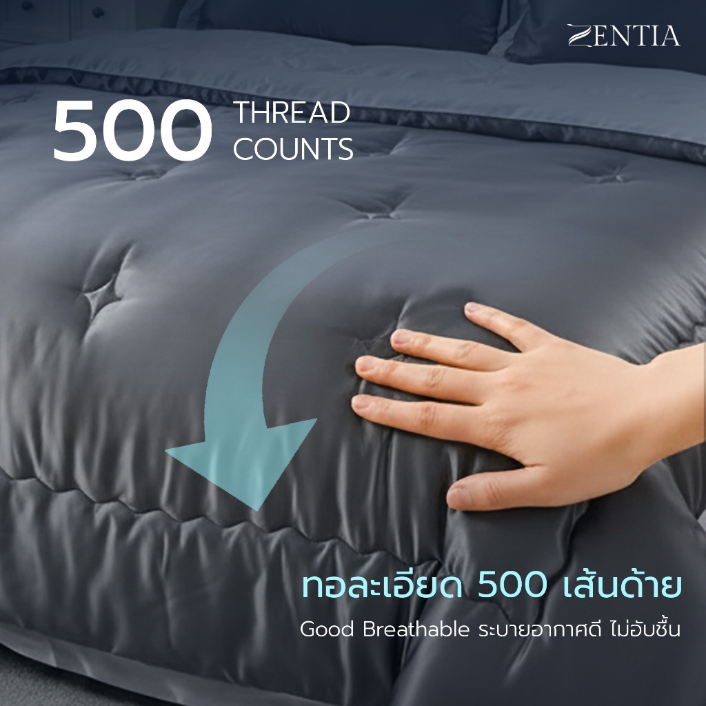 ZENTIA ชุดผ้าปู + ผ้านวม ผ้าแพรสีพื้นทูโทน กันไรฝุ่นขนสัตว์ ทอแน่น นุ่มลื่นเย็นสบาย | 6 ชิ้น [PJ]