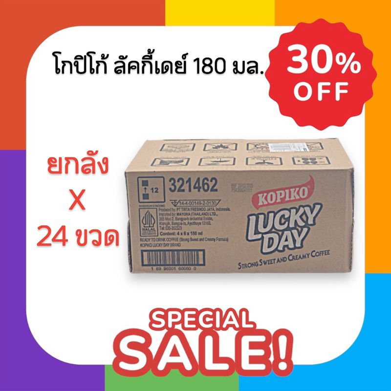 กาแฟพร้อมดื่ม โกปิโก้ กาแฟลัคกี้เดย์ 180 มล. ยกลัง 24 ขวด กาแฟพร้อมดื่ม