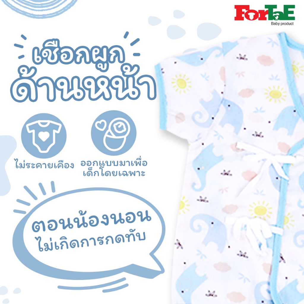 Fortae Baby ชุดเด็กแรกเกิดผ้าป่าน เสื้อผูกหน้า+กางเกงขาสั้น ไซส์0-3เดือน (ฟอร์เต้) รุ่นNC006