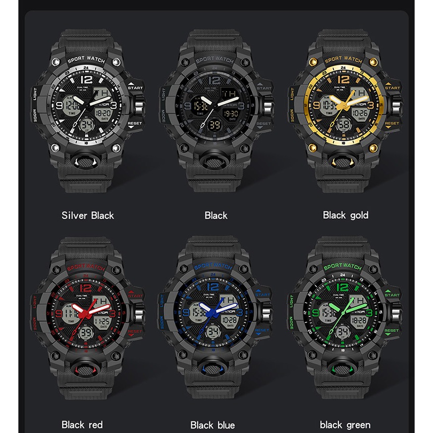 ซานดา 6030-2/ใน คลังสินค้า นาฬิกาผู้ชายกีฬาฟิตเนสจอแสดงผลคู่นาฬิกาข้อมือกันน้ําว่ายน้ํานาฬิกาดิจิตอล