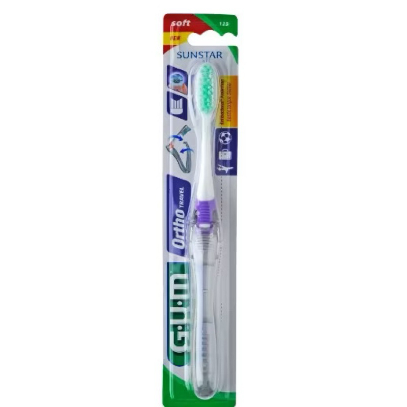 แปรงจัดฟัน GUM orthodontic travel ออร์โธดอนทิก ทราเวิล (เบอร์ 125) แปรงสีฟันจัดฟันพับเก็บได้ 1 ชิ้น คละสี