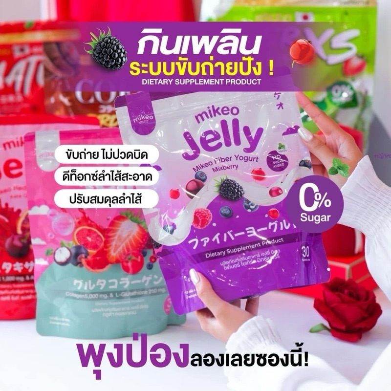 🫐🍒 Mikeo jelly fiber yogurt Mixberry มิเกว เจลลี่ ไฟเบอร์ โยเกิร์ต 1 ห่อใหญ่ 30 ซอง |YIM.STORY