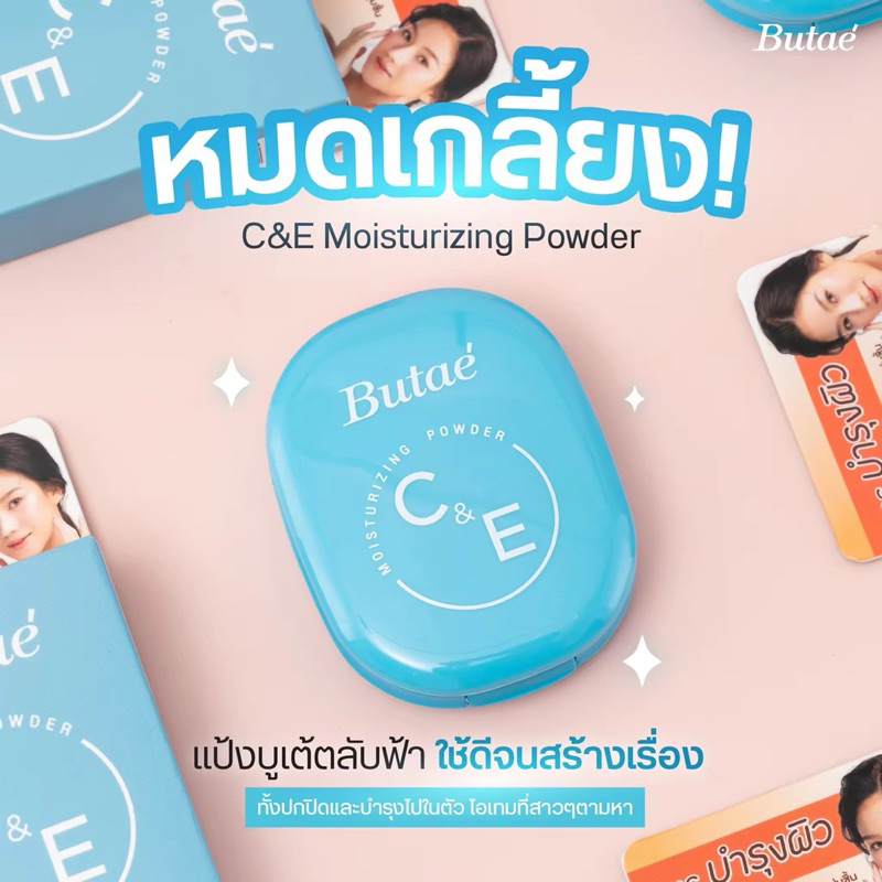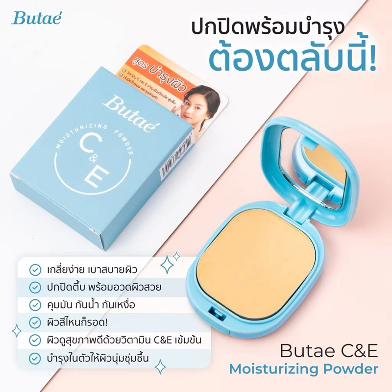 Butae C&E แป้งพัฟ (สีฟ้า) Moisturizing Powder สูตรบำรุงผิว 11กรัม