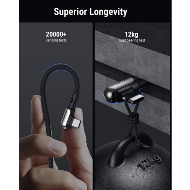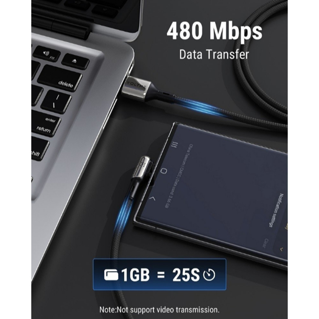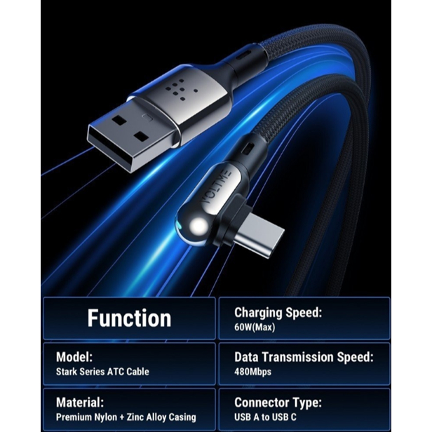 VOLTME POWERLINK STARK USB-A TO USB-C BLACK : 1.2M / 2M : 5A-60Wสายชาร์จ(หัวงอ)