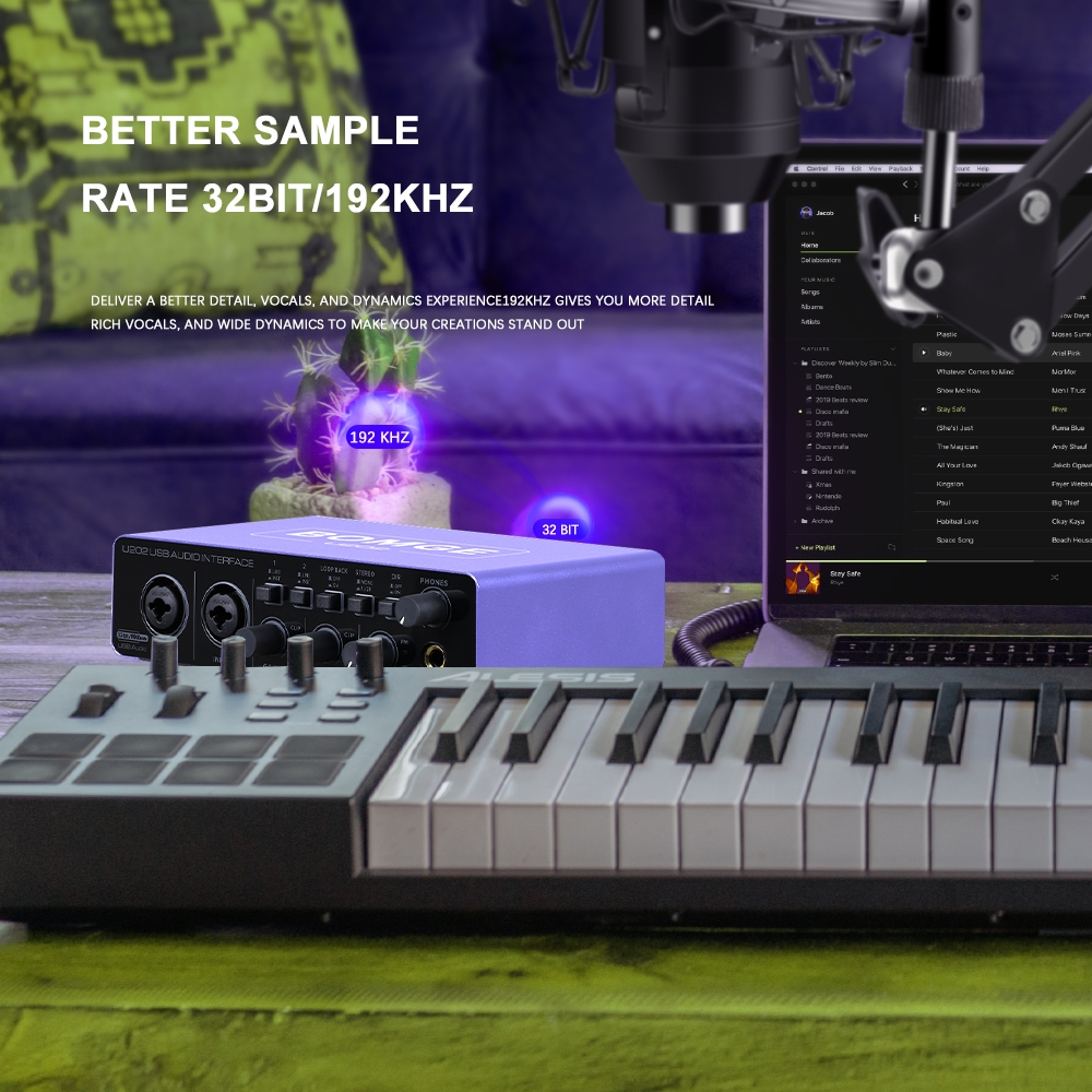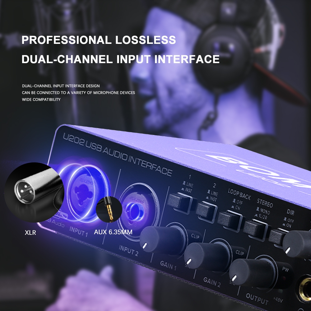 Bomge ใหม่ U202 อินเทอร์เฟซเสียงการ์ดเสียง 24 บิต/192kHz Ad Converter, กีตาร์ไฟฟ้าการบันทึกสดอาชีพ Eler สตูดิโอร้องเพลง, Podcast