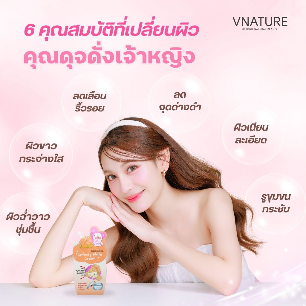 เซ็ตเจ้าหญิง หน้าขาวใส ชุ่มชื้น กลูต้าไฮยา VNATURE Infinity White Cream + Infinity White Serum