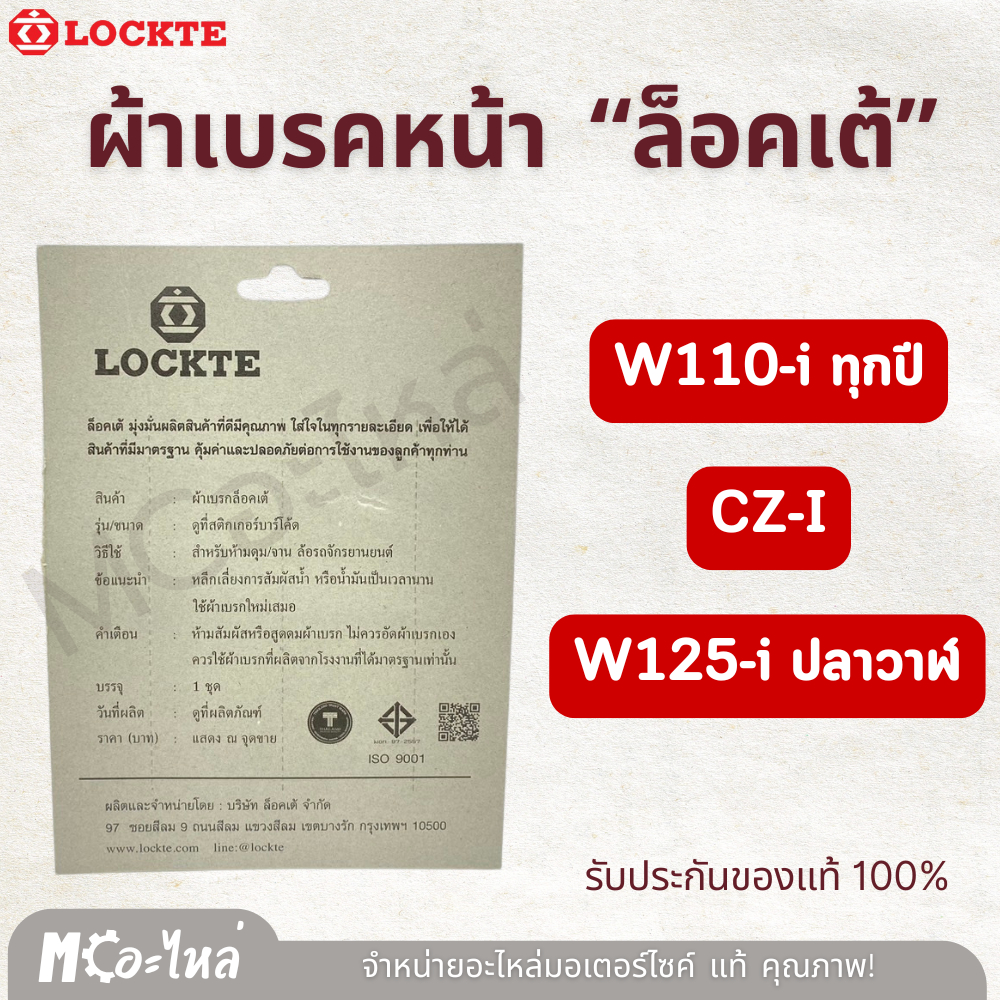 ผ้าเบรคหน้า อย่างดี เวฟ110-I / CZ-I / W125-i ปลาวาฬ ยี่ห้อ LOCKTE คุณภาพดี!