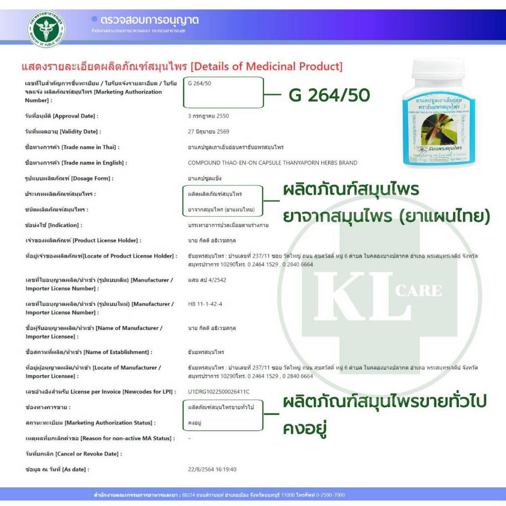 เถาเอ็นอ่อน บรรเทาอาการปวดเมื่อย ธันยาพรสมุนไพร 100 แคปซูล / 6 ขวด ของแท้100%