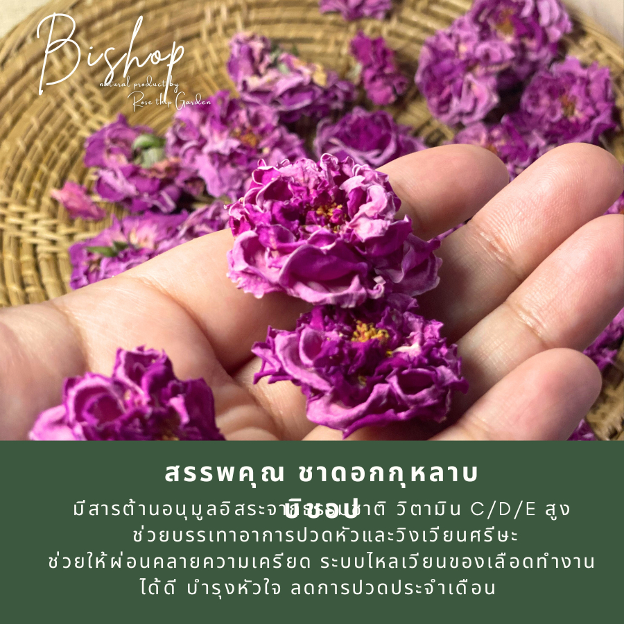 ราคาส่ง 1KG | ดอกกุหลาบแห้ง ชากุหลาบ พันธุ์ มอญ / บิช็อป จากอังกฤษ | Premium Rose Tea Organic 100% | Rose Thip Garden