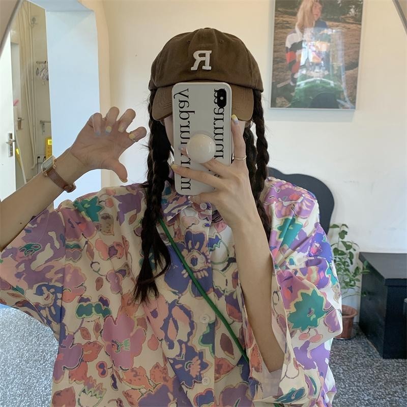 MIMI&DIDI#เสื้อเชิ้ตแขนสั้นลำลอง เสื้อพิมพ์ลายน่ารัก POLO คอ ลวดลายสวยงามมาก เหมาะกับชุดหวานๆน่ารัก#W336