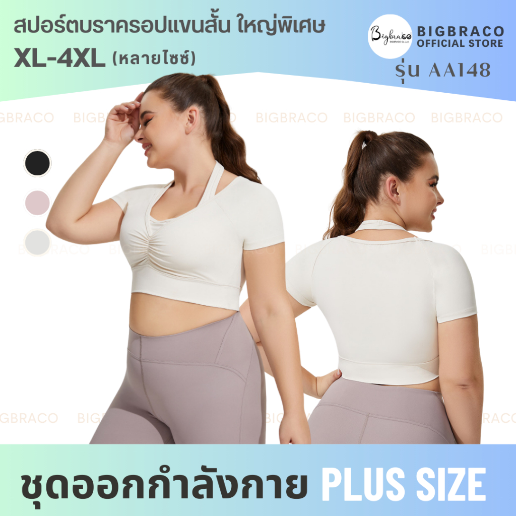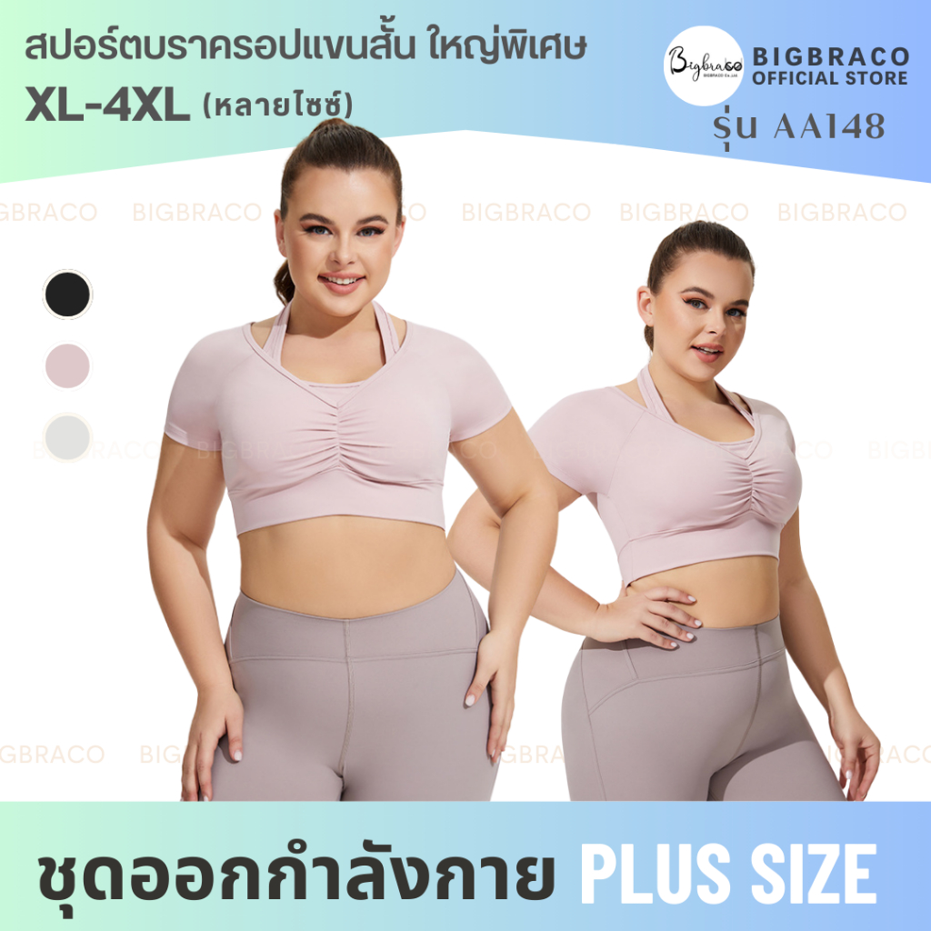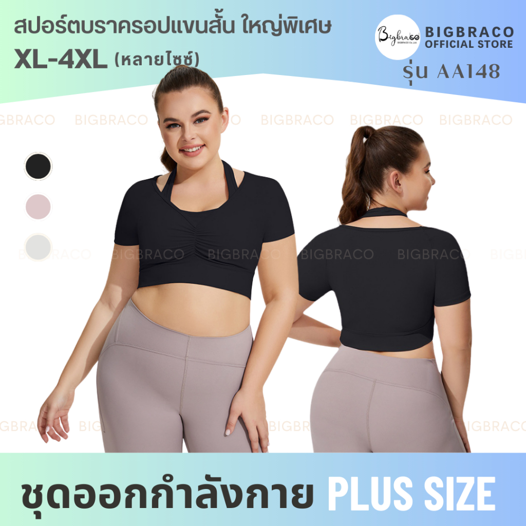 (ใหญ่พิเศษ อก40-54") Bigbraco | AA148 - เสื้อโยคะสาวอวบ เสื้อพิราทิสสาวอวบ สปอร์ตบราคล้องคอ ทรงครอปเต็มตัว สวมใส่สบาย
