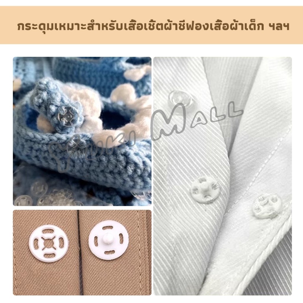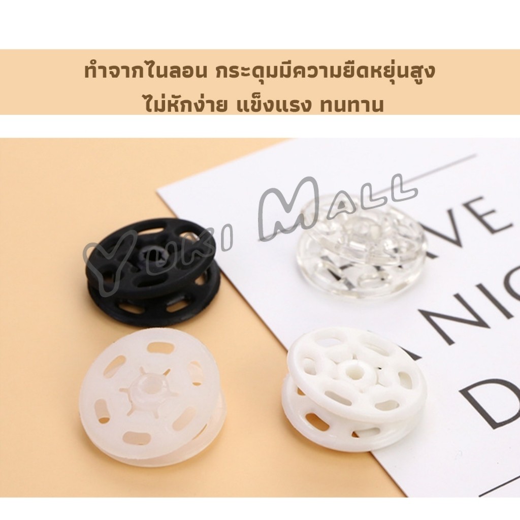 Yuki 10คู่ กระดุมแป๊กพลาสติก สีดำ สีขาว สีใสแบบเย็บ 10mm 15mm กระดุมแป๊กพลาสติกสีดำ Invisible button