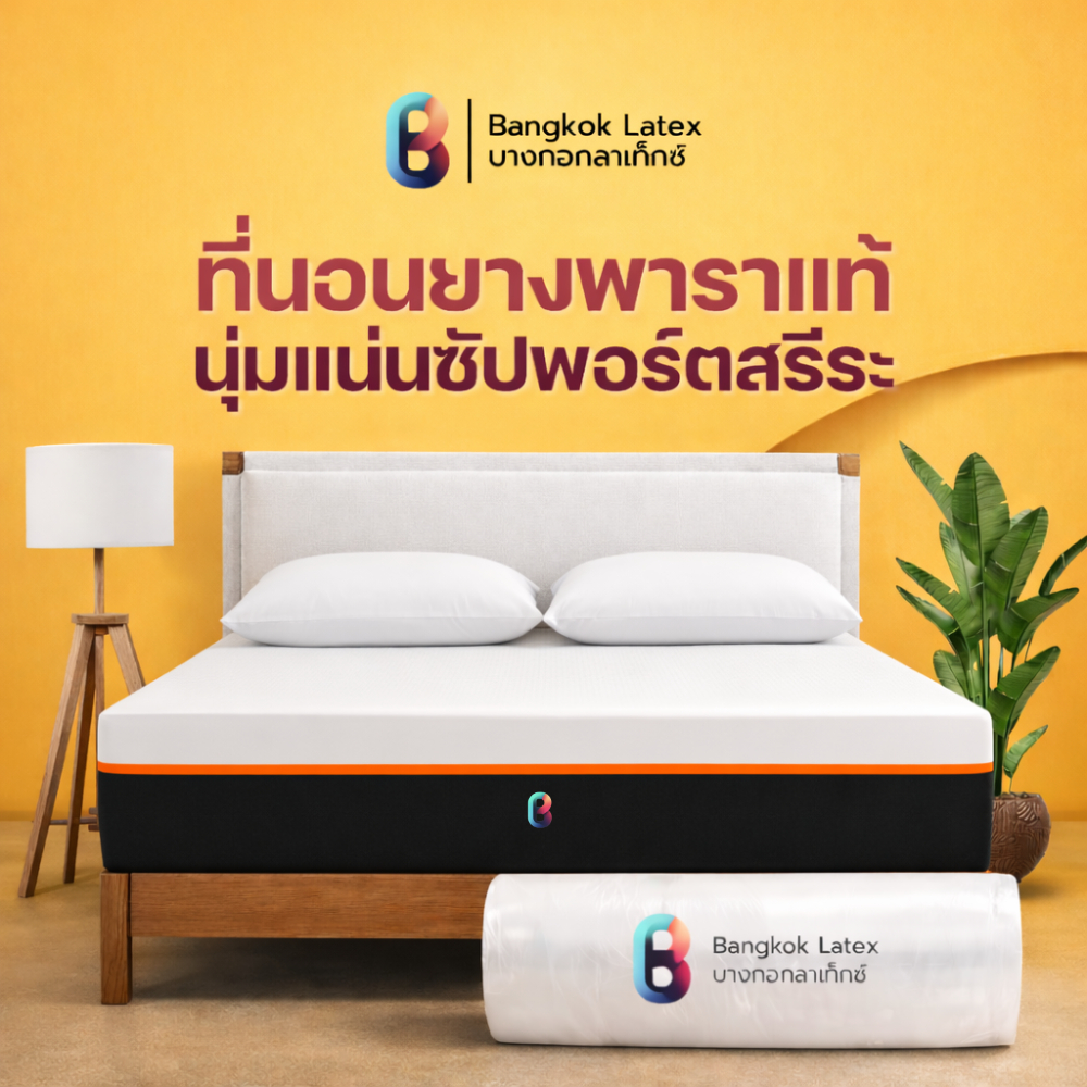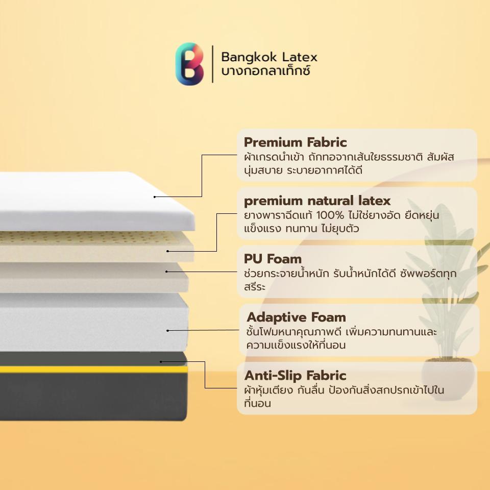 Bangkok Latex [อัดสุญญากาศ] ที่นอนยางพาราแท้ รุ่น Phrae สัมผัสแน่น รองรับสรีระร่างกาย นอนสบายลดอาการปวดหลัง