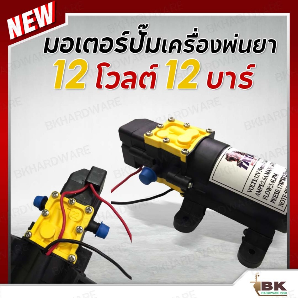 ปั้มเดี่ยว มอเตอร์ปั้ม 12 บาร์ 12 โวลล์ ปั้มพ่นยา มอเตอร์ปั๊มเครื่องพ่นยา ใช้กับ เครื่องพ่นยาแบตเตอรี่ ทุกขนาด อย่างดี