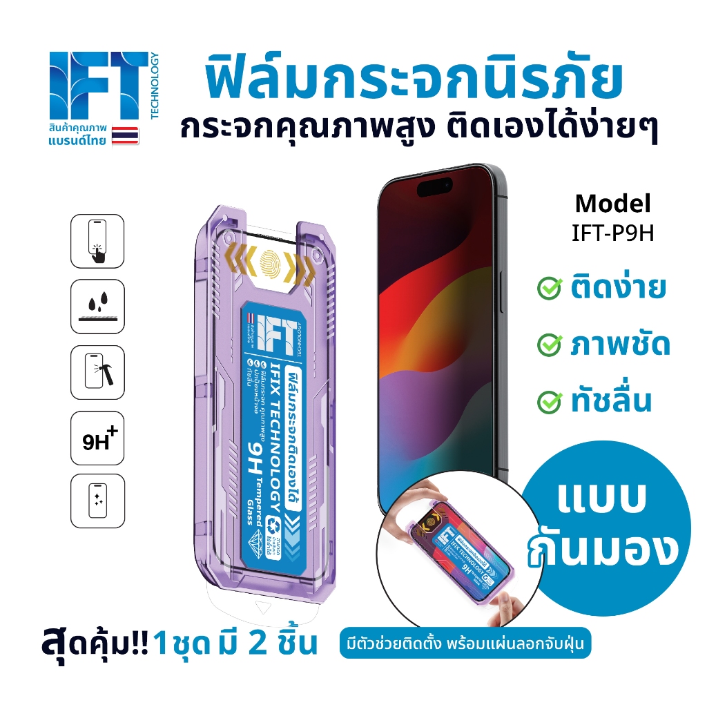 ฟิล์มกระจกรุ่นใหม่ IFT ไอโฟนแบบกันมอง 1 ชุด มี 2 ชิ้น มีทั้งแบบใส และ แบบกันมอง