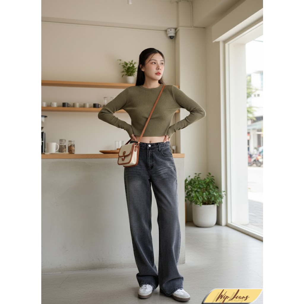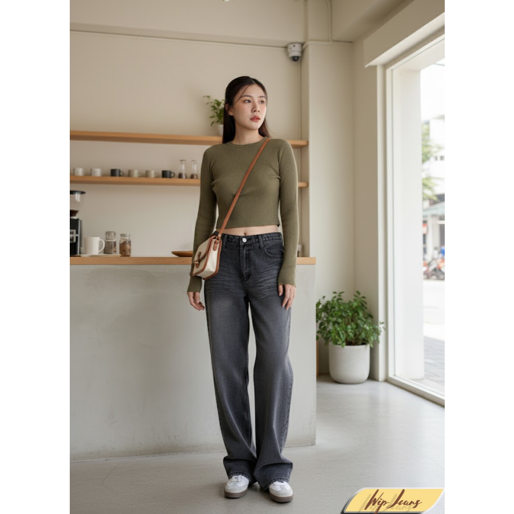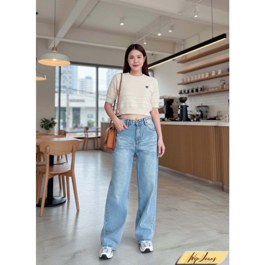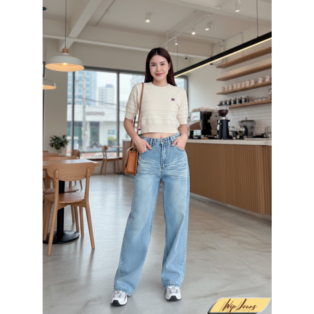 กางเกงยีนส์ขากระบอกใหญ่เอวต่ำทรงสวย4สีให้เลือกมีไซส์ใหญ่ S-5XL B060