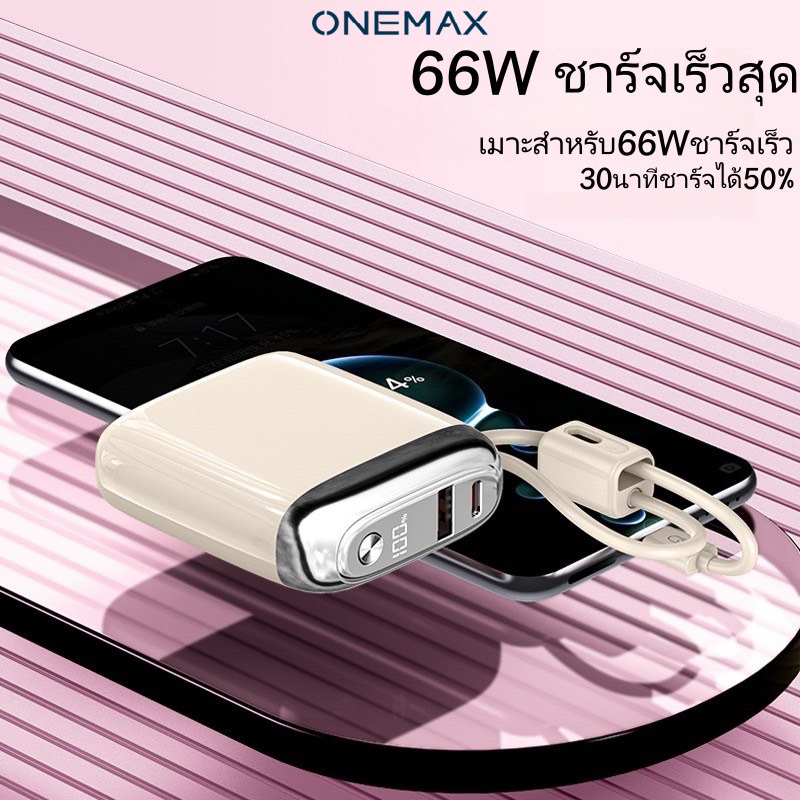 (CCC)ONEMAX 10000mAh พาวเวอร์แบงค์ ชาร์จเร็ว พร้อมสายในตัว Powerbank