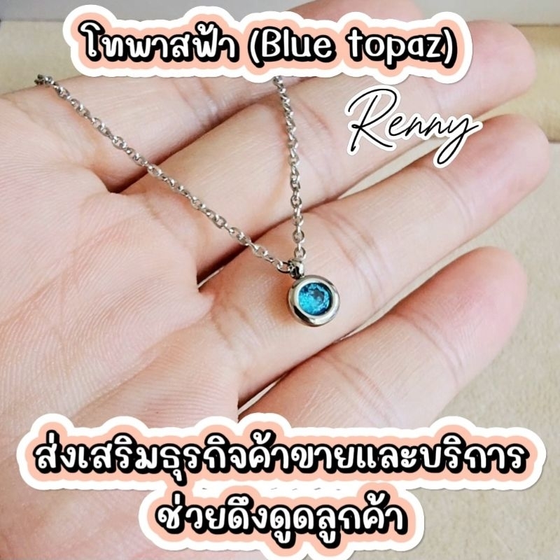 🔥โทพาสฟ้า (Blue topaz) Renny pendant จี้พลอยมินิมอล 4 มิล พร้อมสร้อยคอ ไม่ลอก ไม่ดำ ไม่แพ้