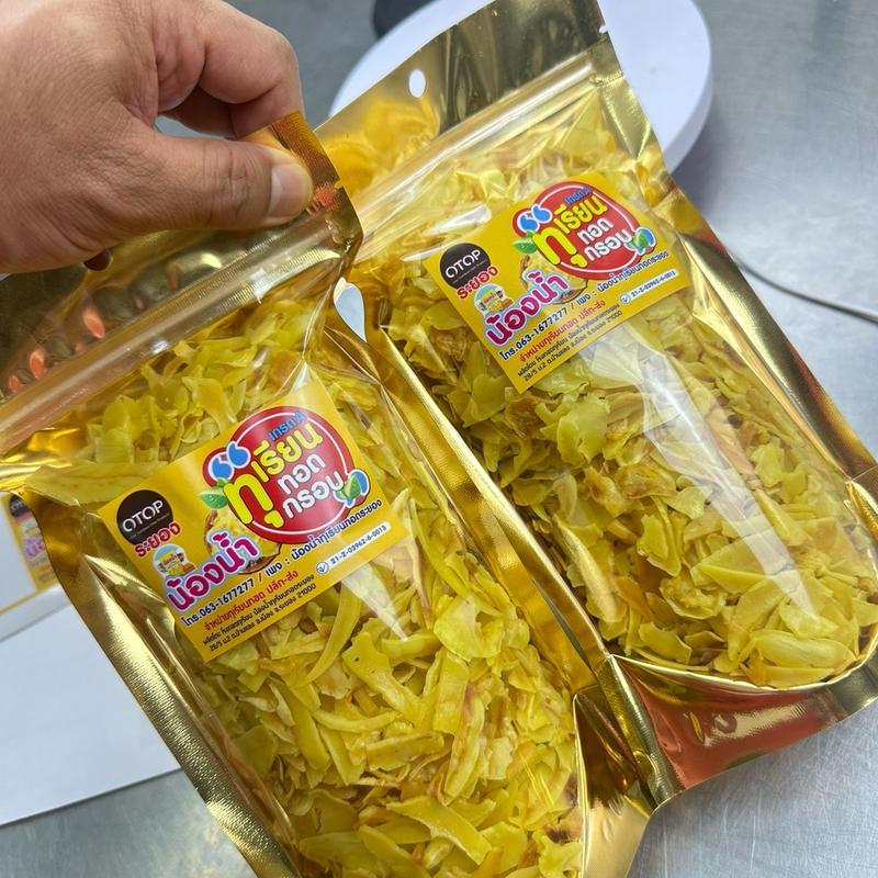 ร้านน้องน้ำระยอง ทุเรียนทอดเกรด C ชิ้นสวย ขนาด500กรัม (นน.รวมถุง) กรอบ หวานมัน อร่อย