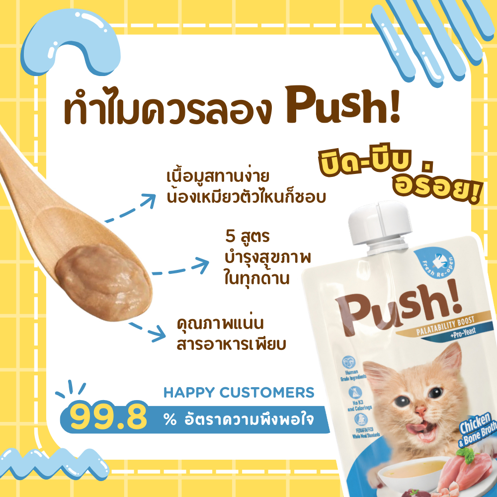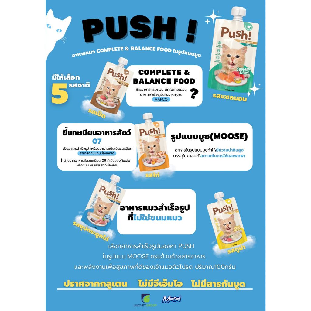 (10ซอง)อาหารเปียกแมว Push 100g เนื้อมูส Complete & Balanced กินเป็นมื้อหลัก สารอาหารครบถ้วน