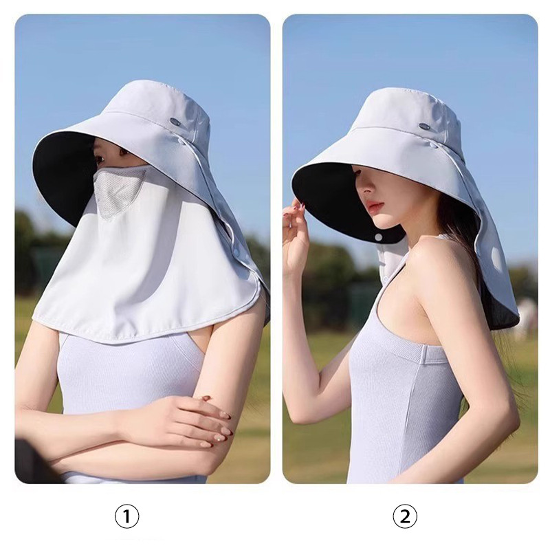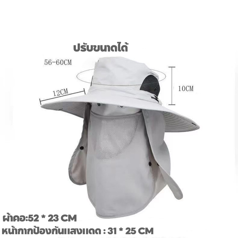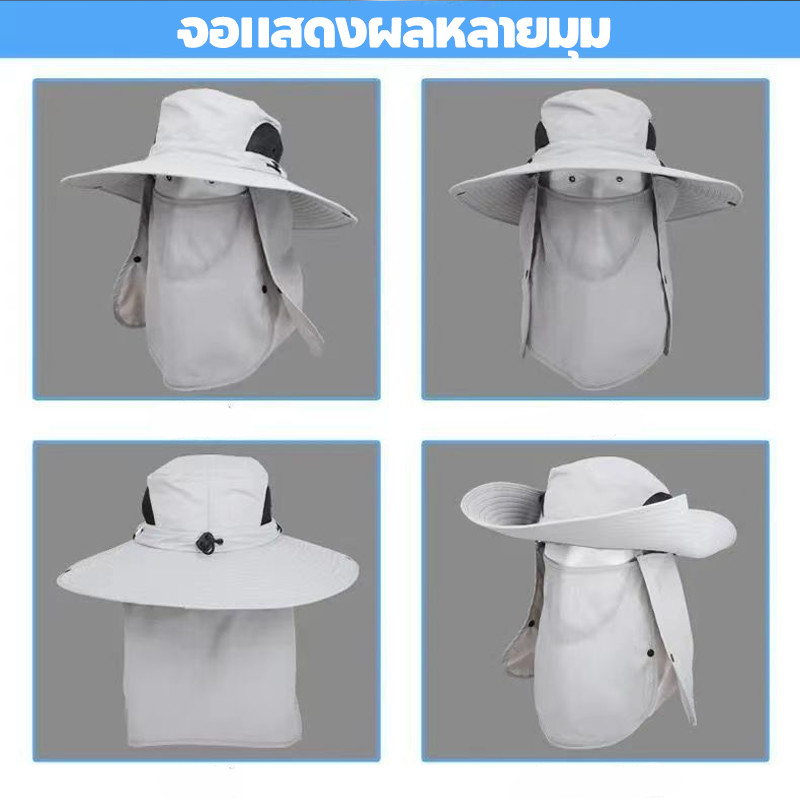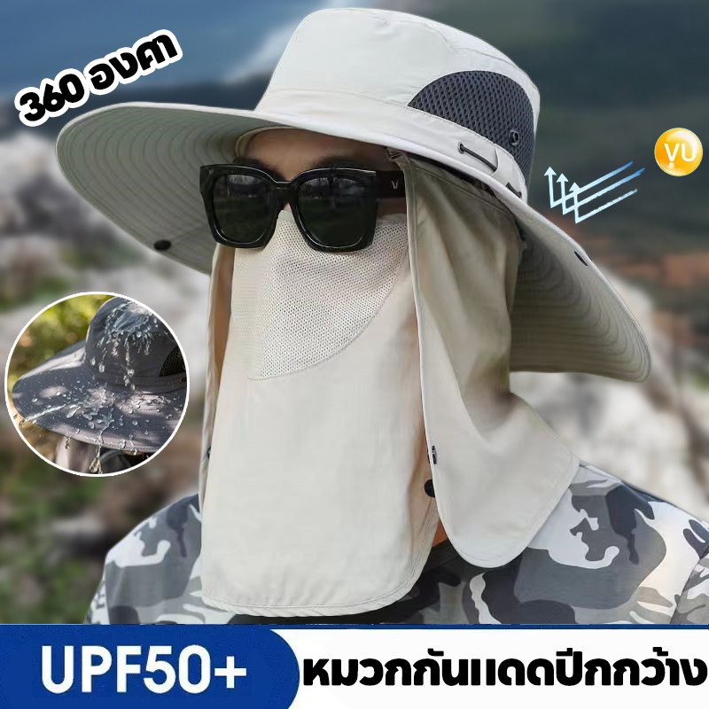 หมวกกันแดด 3in1 รอบทิศทาง ปิดหน้า-คลุมคอได้ UPF50+ พับได้ น้ำหนักเบา สำหรับเดินป่า-ตกปลา-เซิร์ฟ