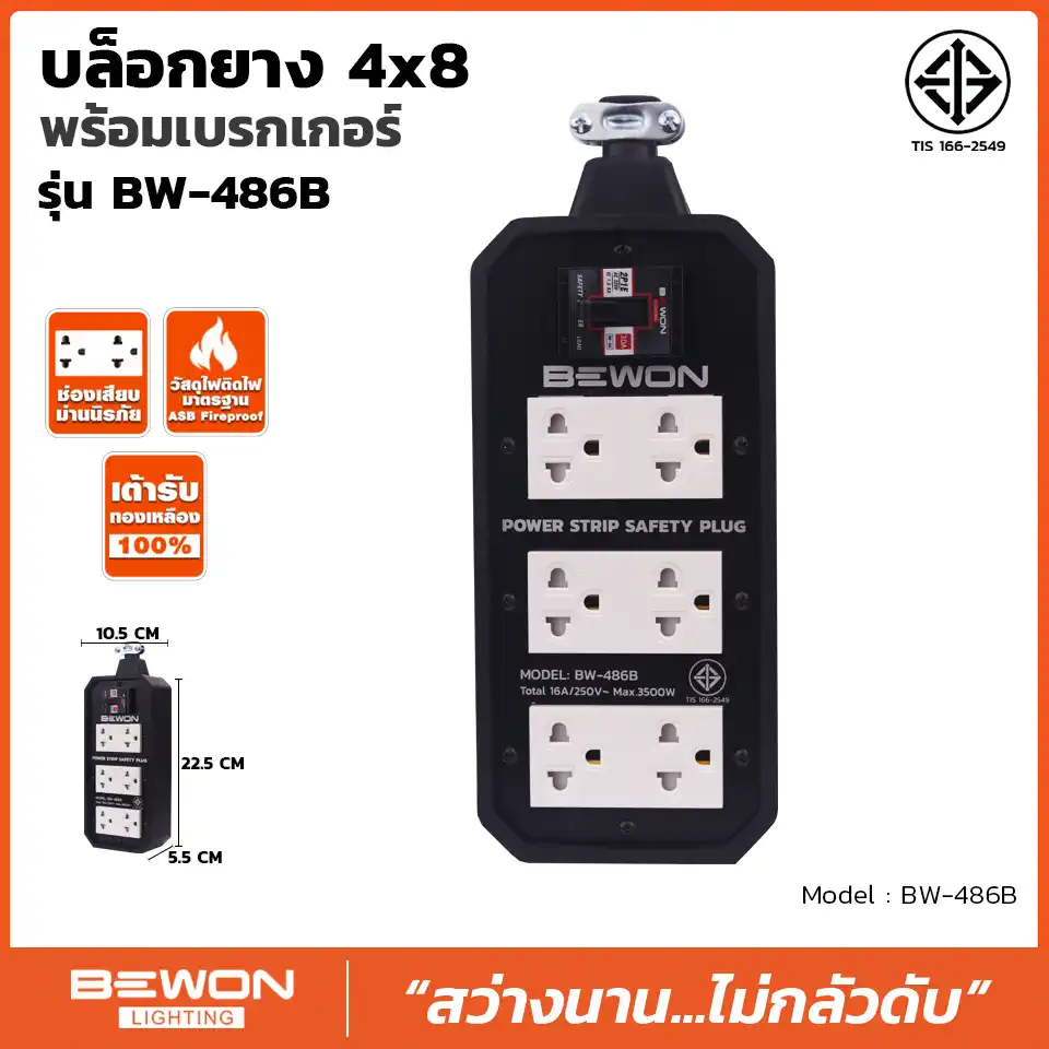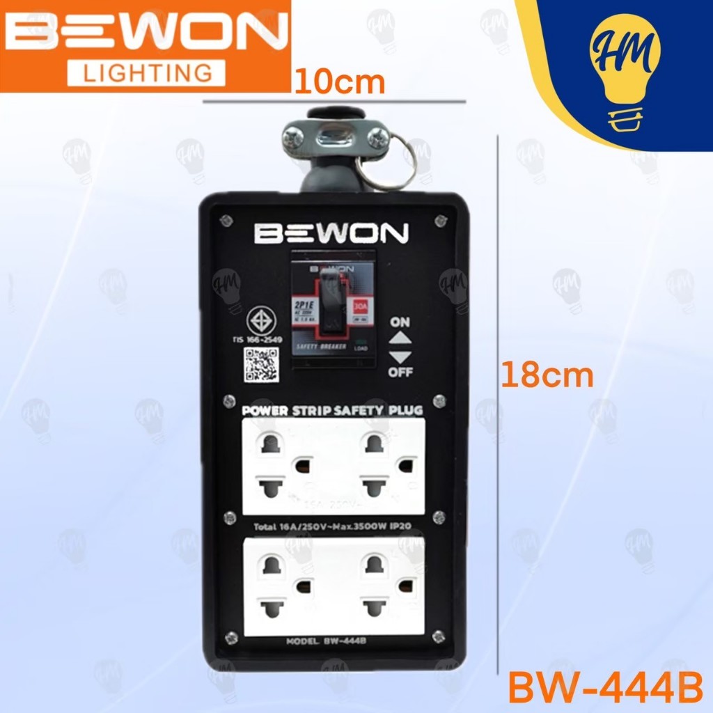 Bewon ปลั๊กไฟ บล็อคยาง พร้อมปล๊กกราวด์คู่ พร้อมเบรกเกอร์ 4x8