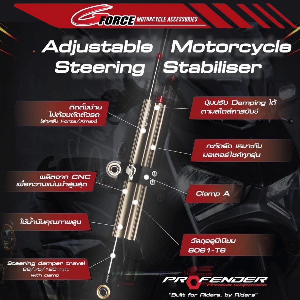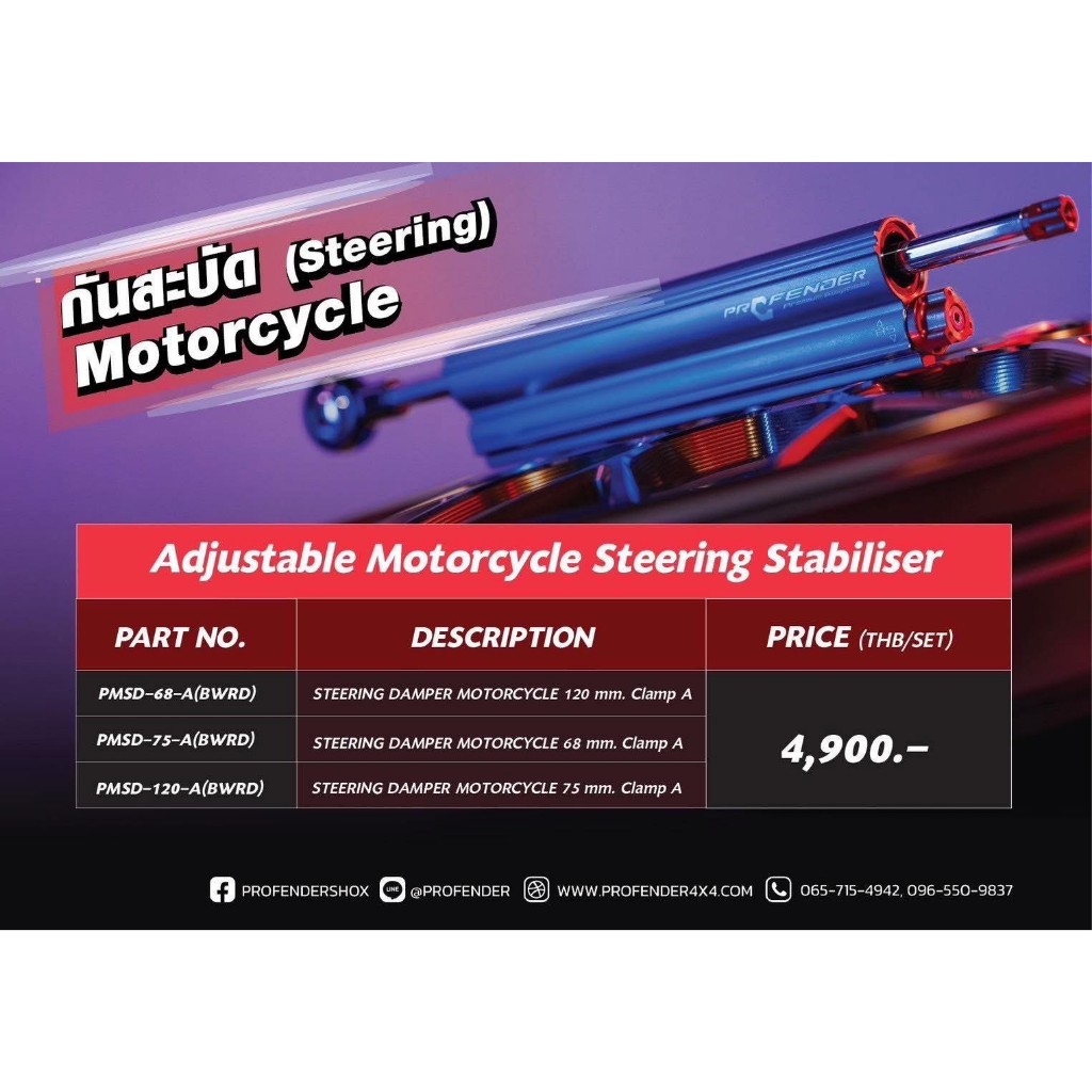 กันสะบัด profender (steering) CNC มี 3 ขนาด 68mm. / 75mm. / 120mm ปรับได้ 18ระดับ กันสบัดโปรเฟนเดอร์